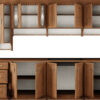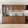Długość zestawu: 260 cm, grubość blatu: 28 mm, fronty wykonane z MDF, kolory: front:orzech, korpus – orzech, blat – orzech