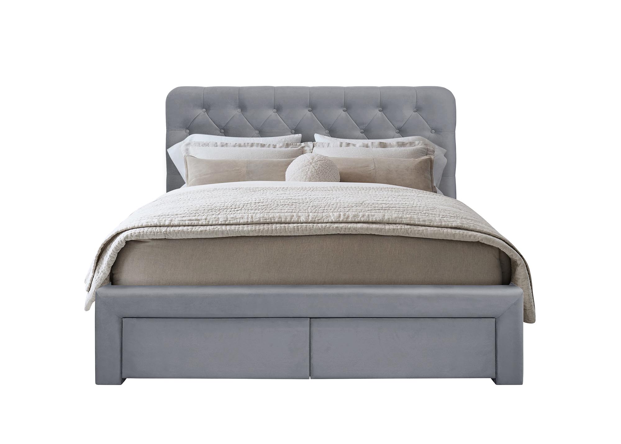 wymiary: 167/216/118 cm; łóżko z szufladami, materiał: tkanina – velvet / kolor: popielaty, * łóżko bez materaca, w opcji materac POLARIS 160 lub SYRIUSZ 160