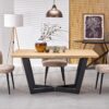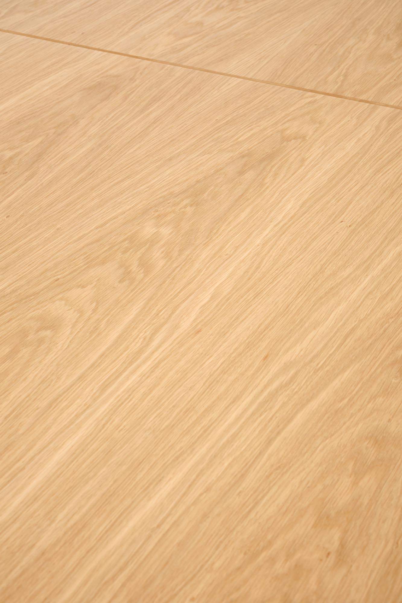 stół rozkładany, wymiary: 160-250(340)/90/77 cm, materiał: blat – płyta fornirowana, na obrzeżach drewno lite, nogi – stal malowana proszkowo, kolor: blat – dąb naturalny, nogi – czarny, * w opcji przedłużki do blatów MASSIVE 2 (wymiary: 45×90 cm – 2 szt.