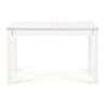 stół rozkładany, wymiary: 118÷158/75/76 cm, materiał: blat – płyta laminowana, na obrzeżach ABS, nogi – MDF laminowany, kolor: biały