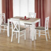 stół rozkładany, wymiary: 118÷158/75/76 cm, materiał: blat – płyta laminowana, na obrzeżach ABS, nogi – MDF laminowany, kolor: dąb sonoma / biały
