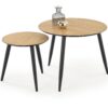 zestaw 2 ław, wymiary: fi40/40 cm oraz fi60/48 cm, materiał: MDF + okleina naturalna / drewno lite, kolor: dąb złoty – czarny