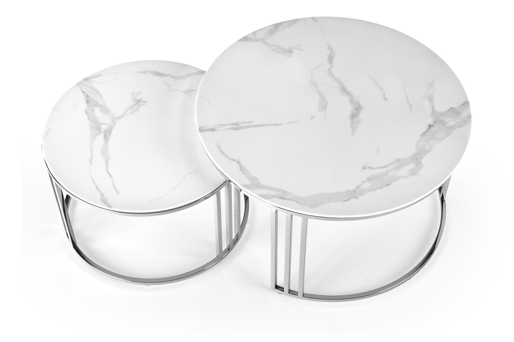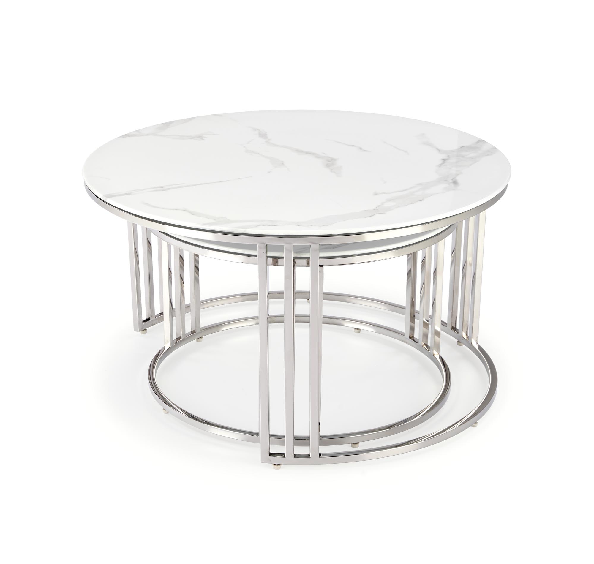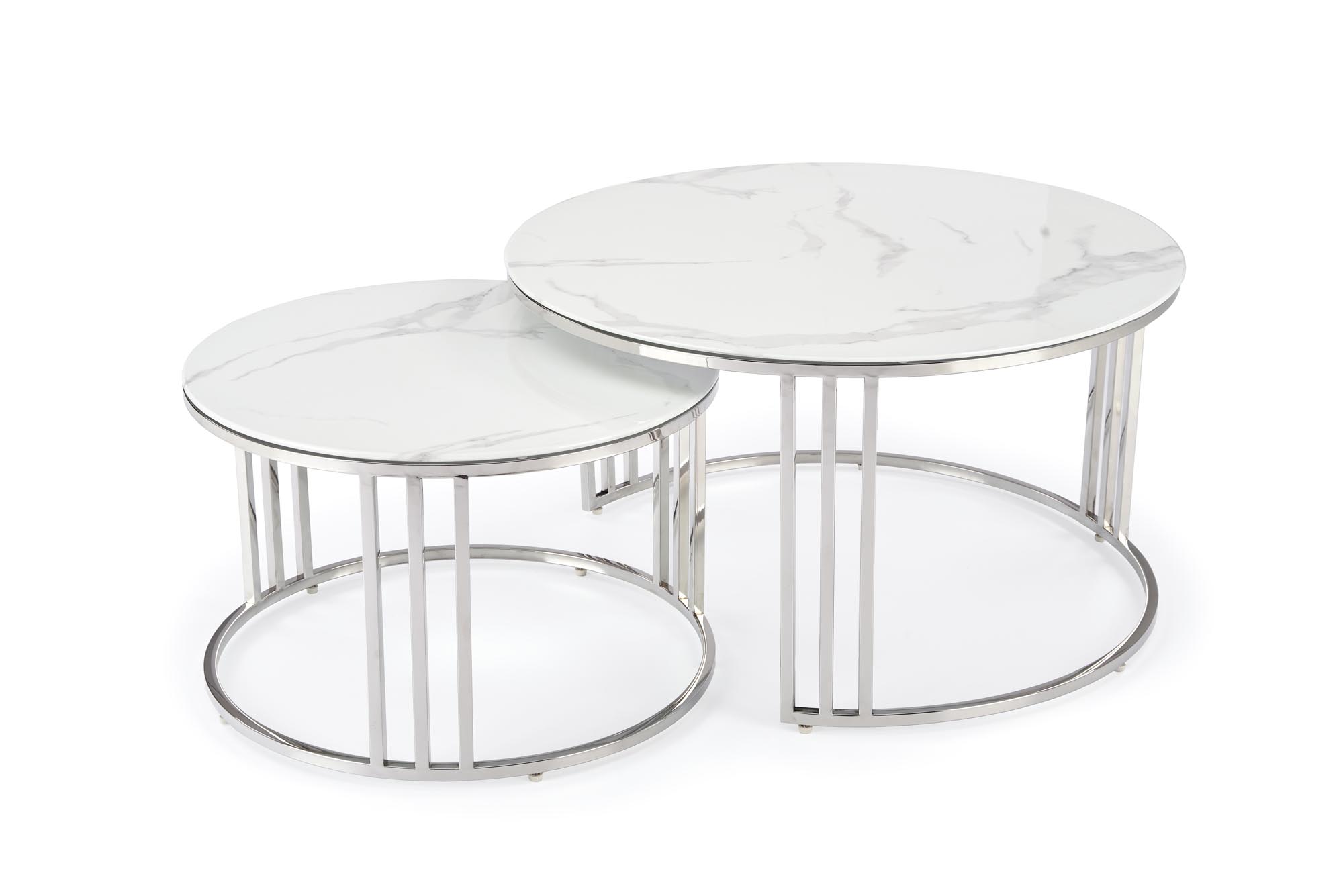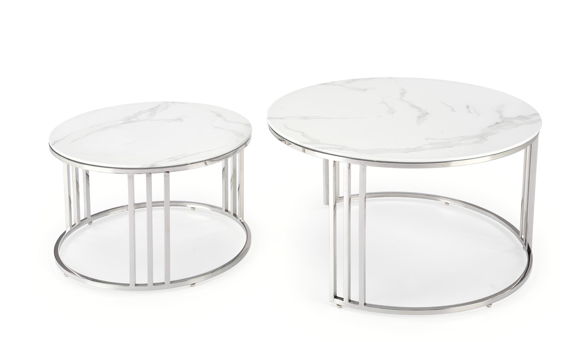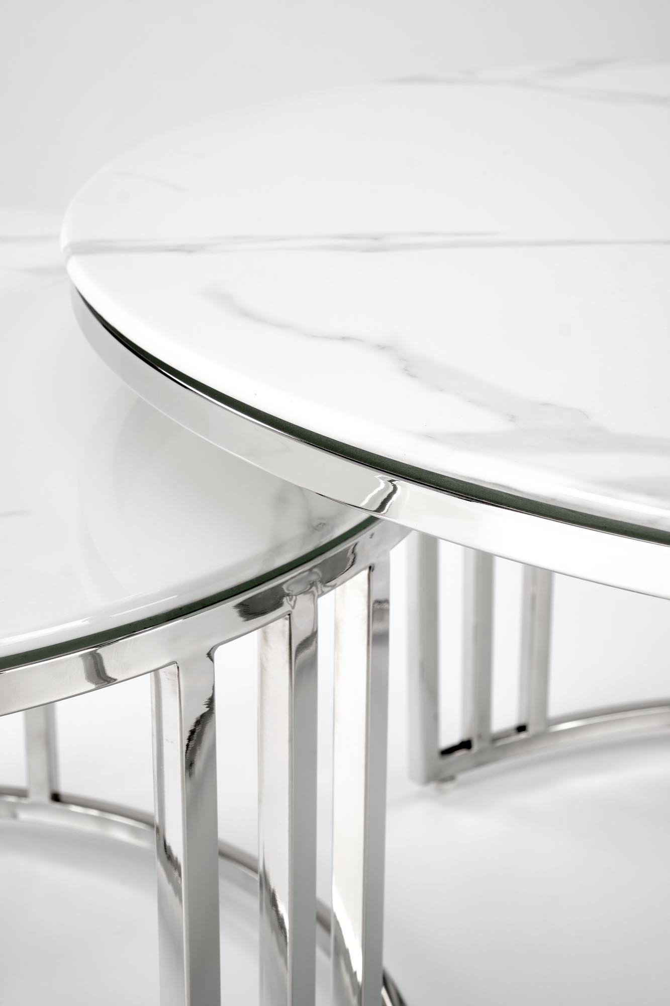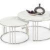 MERCURY 2 zestaw 2 ław, stelaż – srebrny, szkło – biały marmur (1p=1szt)