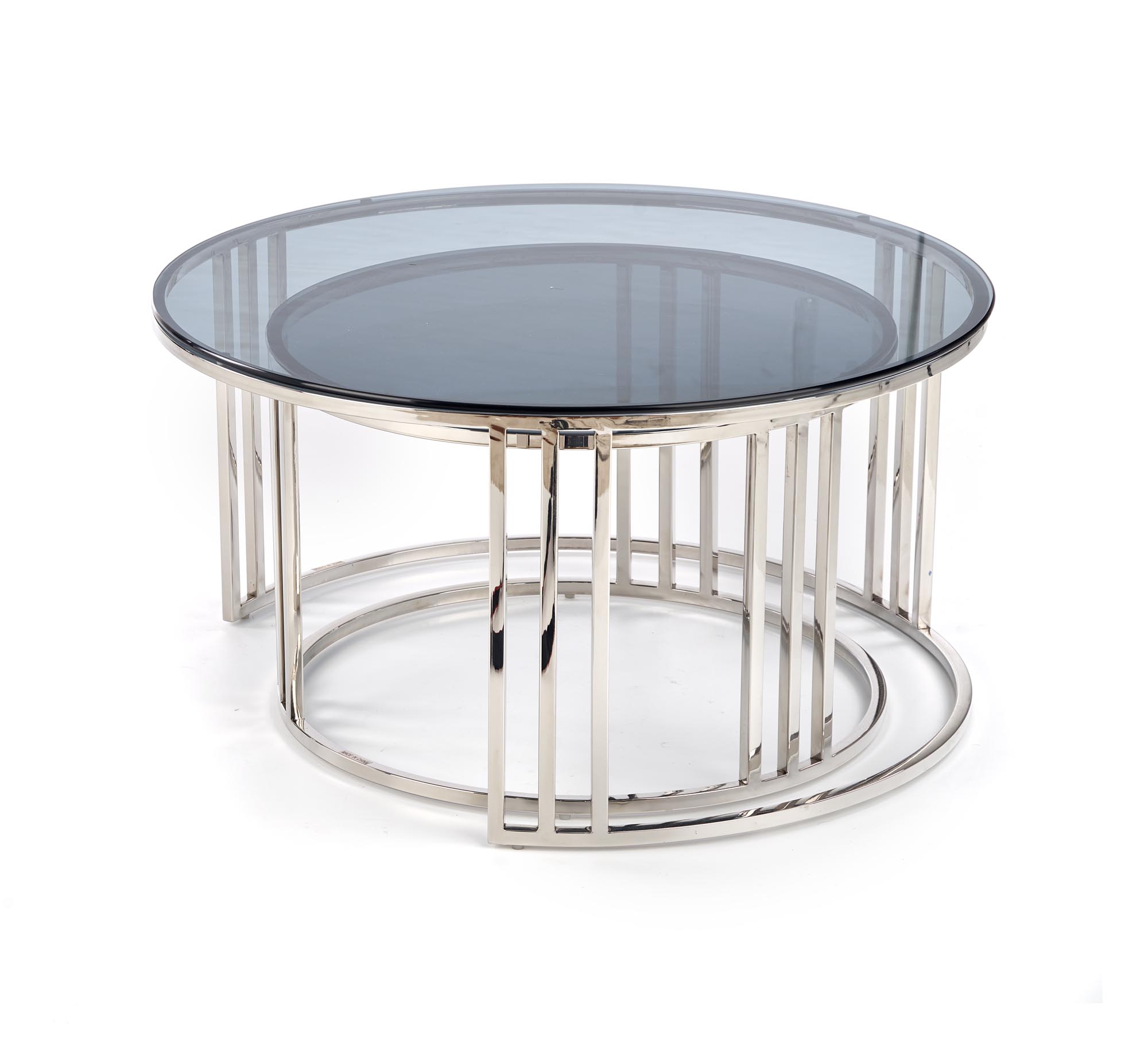MERCURY zestaw 2 ław, stelaż – srebrny, szkło – dymiony (1p=1szt)