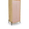 wymiary: 78/60/179 cm, materiał: płyta meblowa okleinowana gr.18 mm / obrzeża abs / system otwierania push-click, kolor: korpus – hikora naturalana, fronty – antyczny róż