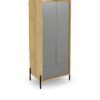 wymiary: 78/60/179 cm, materiał: płyta meblowa okleinowana gr.18 mm / obrzeża abs / system otwierania push-click, kolor: korpus – hikora naturalana, fronty – szary przykurzony