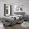 łóżko z szufladami, materiał: tkanina / drewno lite – kauczukowe, kolor: popielaty, * łóżko bez materaca, w opcji materac POLARIS 160