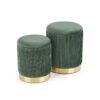 wymiary: fi 36/44 oraz fi 31/38 cm, zestaw 2 puf, materiał: tkanina / stal chromowana, kolor: ciemny zielony / złoty
