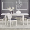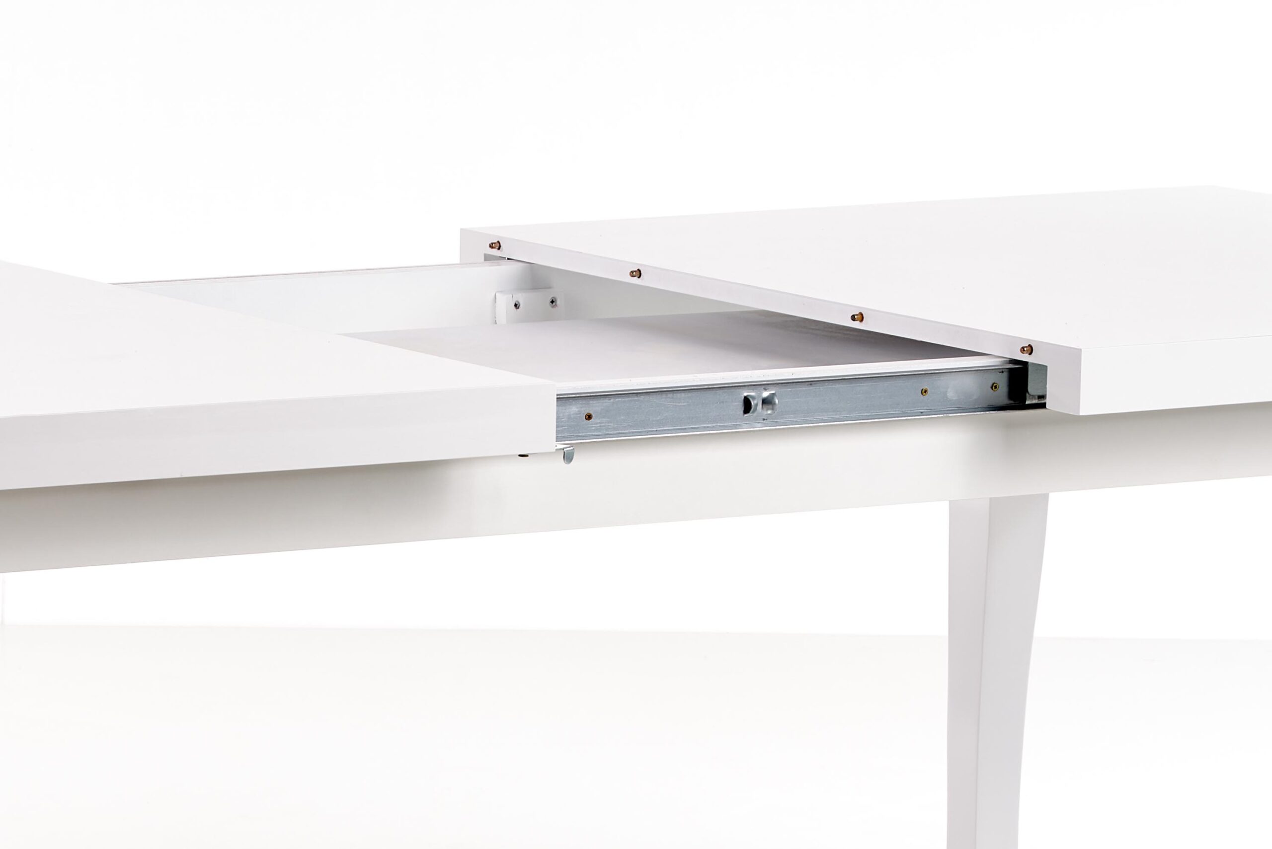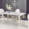stół rozkładany, wymiary: 160-240/90/75 cm, materiał: blat – płyta MDF laminowana + obrzeża ABS, nogi – drewno lite (bukowe), kolor: biały