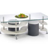 ława z pufami, wymiary: 130/70/42 cm, materiał: szkło / MDF lakierowany / stal chromowana / PVC, kolor: popiel / ciemny popiel