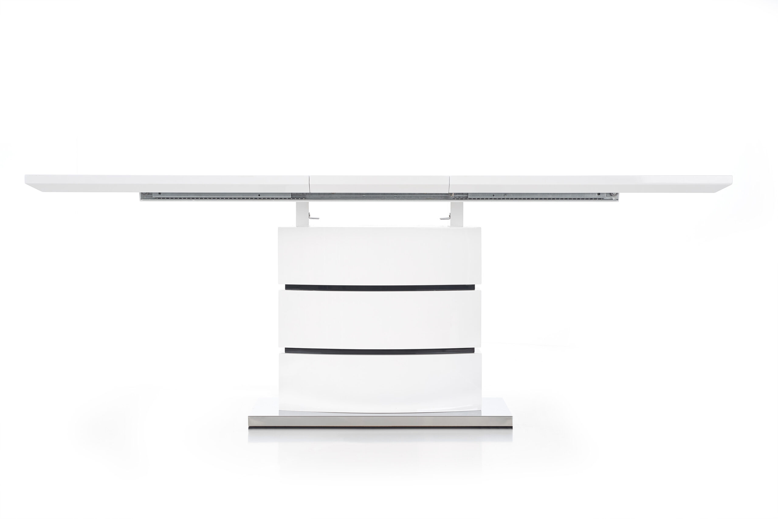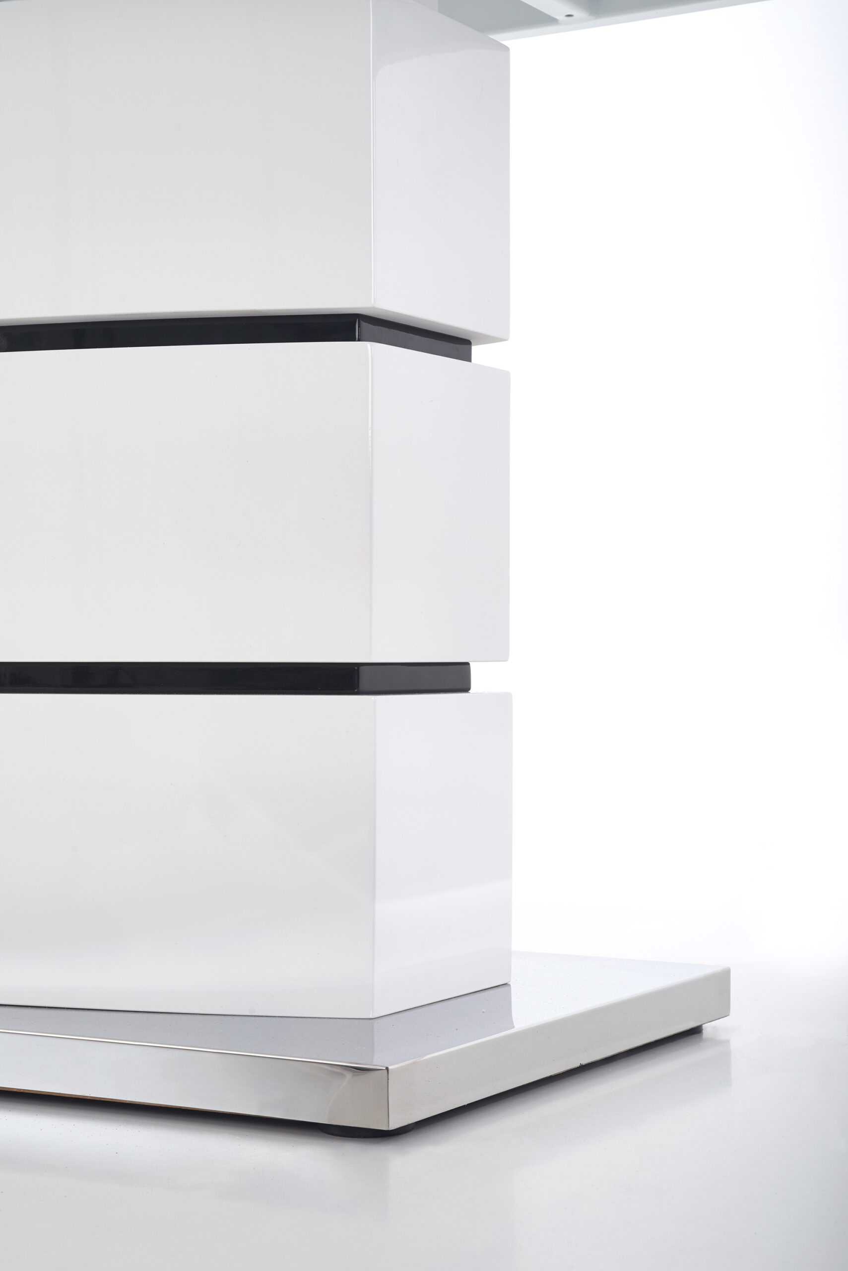 stół rozkładany, wymiary: 160÷200/90/75 cm, materiał: MDF lakierowany / stal nierdzewna, kolor: biały z czarnymi pasami