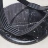 wymiary: o122/77 cm, materiał: szkło / stal malowana proszkowo / kamień syntetyczny, kolor: blat – transparentny, nogi – czarny