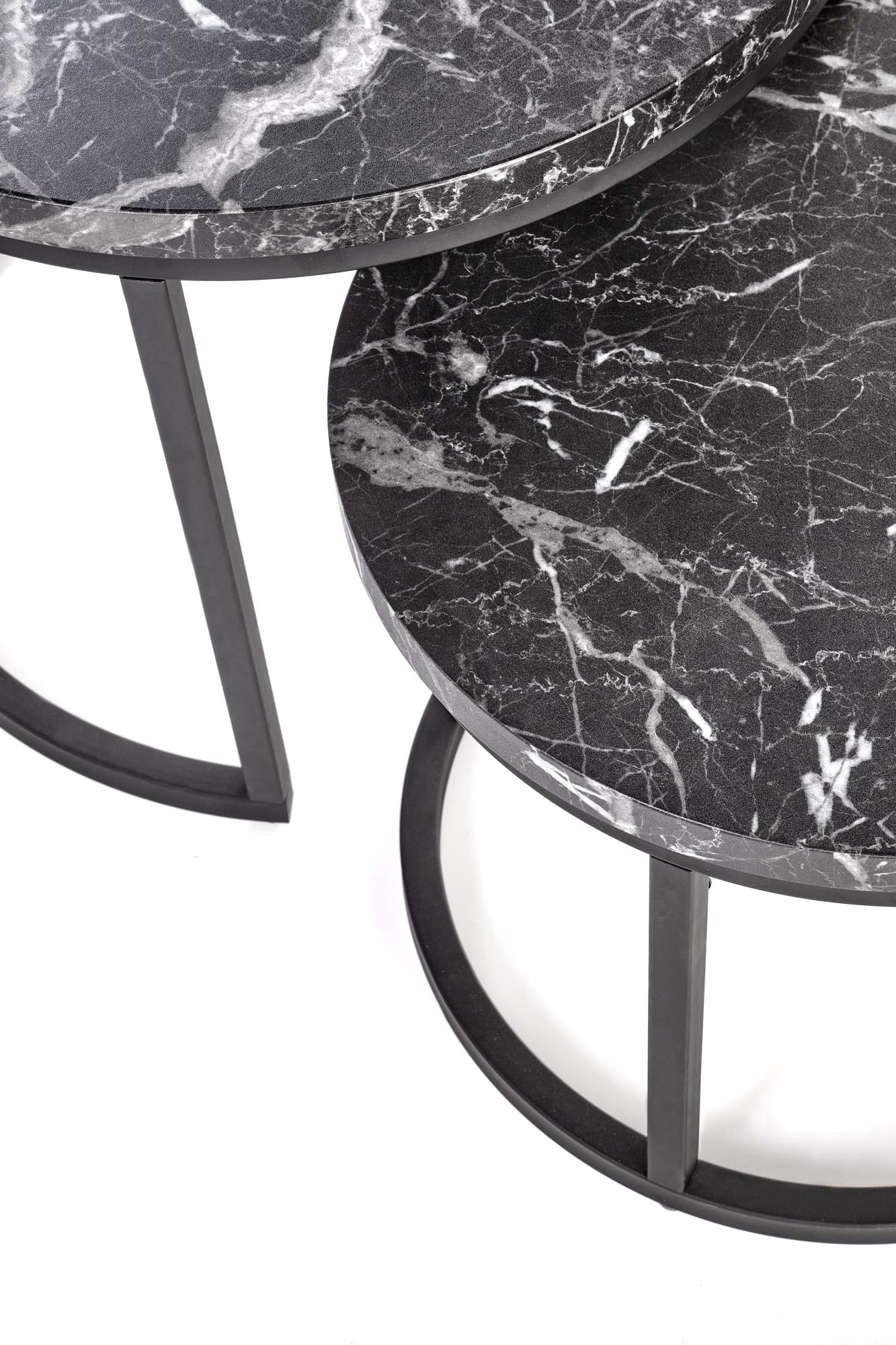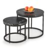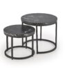 wymiary: duża – fi53/45 cm, mała – fi43/35 cm, zestaw 2 ław, materiał: MDF okleinowany / stal malowana proszkowo, kolor: czarny marmur – czarny