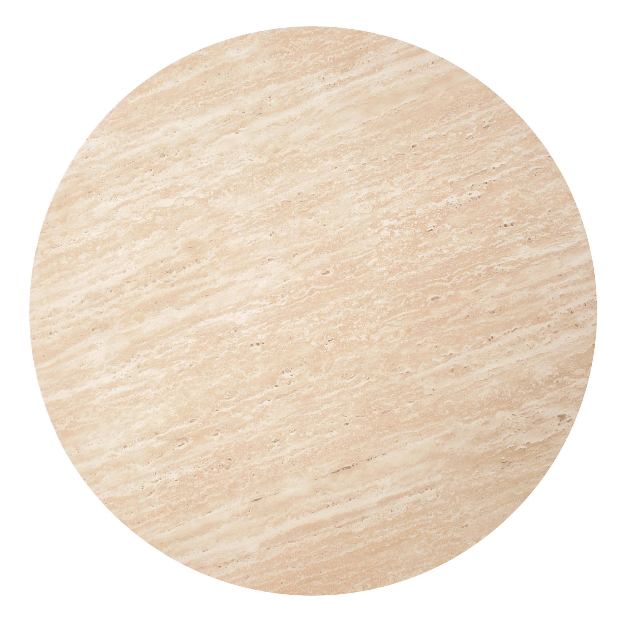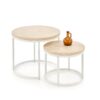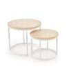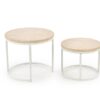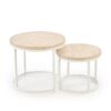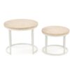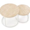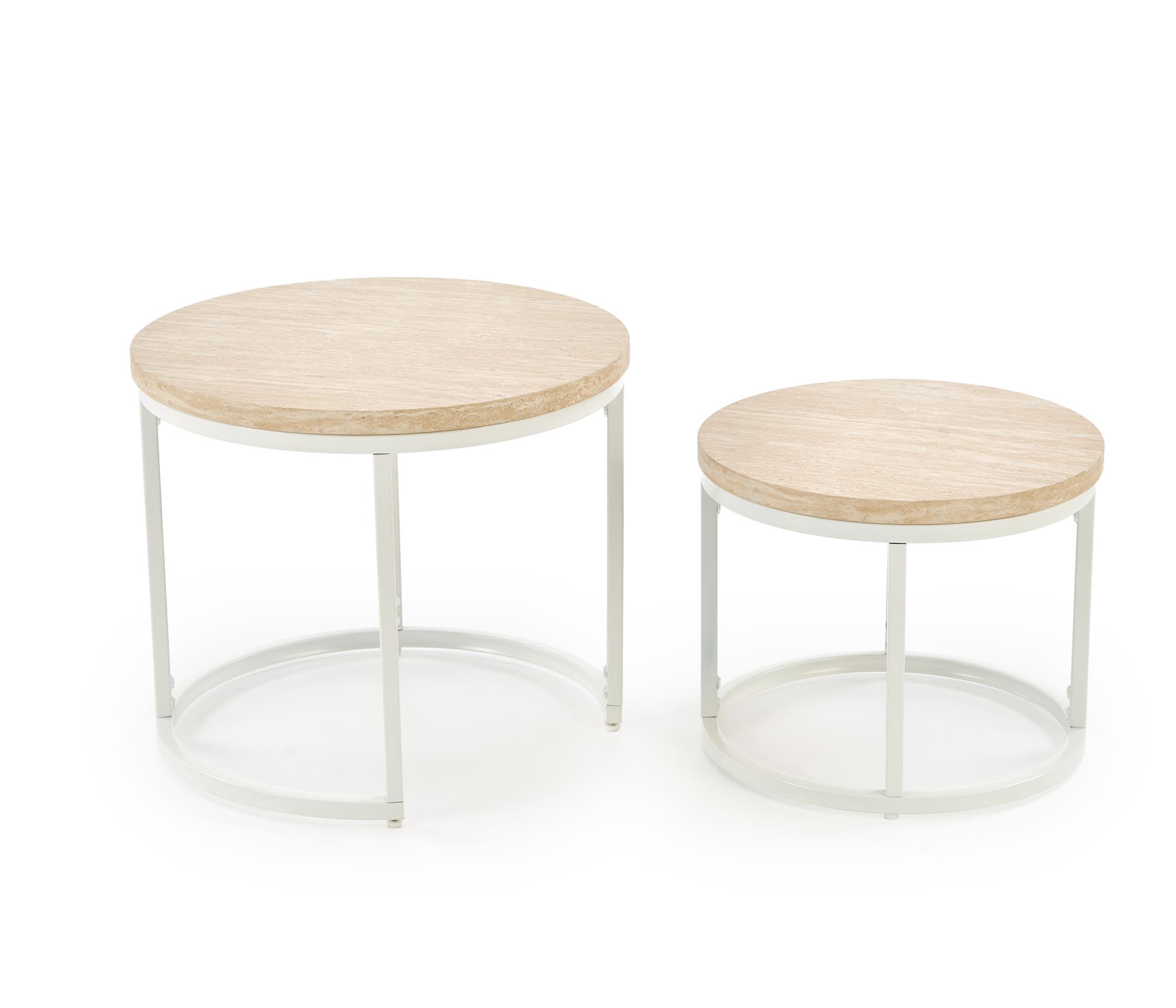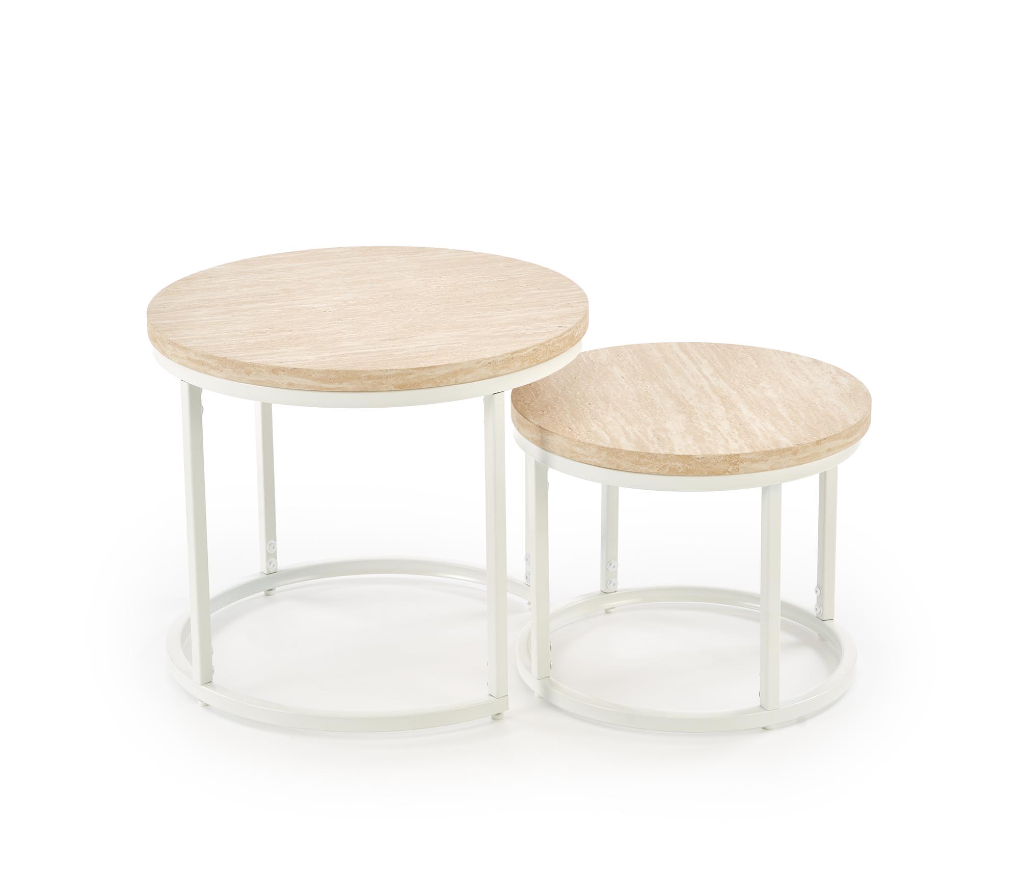 wymiary: duża – fi53/45 cm, mała – fi43/35 cm, zestaw 2 ław, materiał: MDF okleinowany / stal malowana proszkowo, kolor: trawertyn / biały