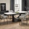 wymiary: 160-220/90/77 cm, stół rozkładany, materiał: ceramika / MDF lakierowany / stal malowana proszkowo, kolor: blat – biały marmur / czarny, noga – czarny