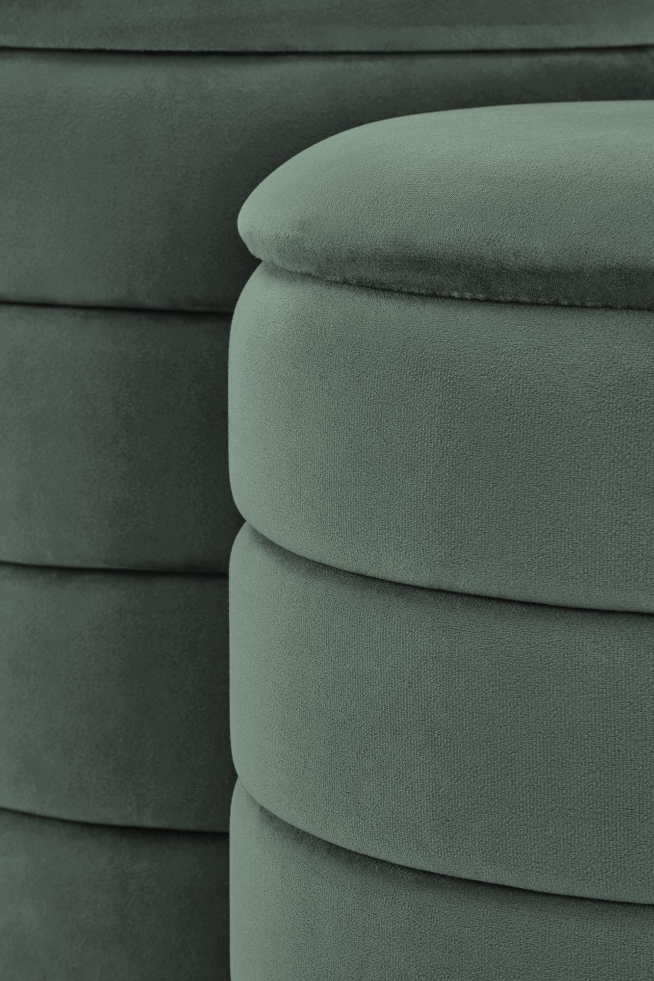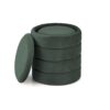 wymiary: 40/44 cm oraz 33/39 cm; zestaw 2 puf z funkcją pojemnika, materiał: tkanina – velvet, kolor c.zielony