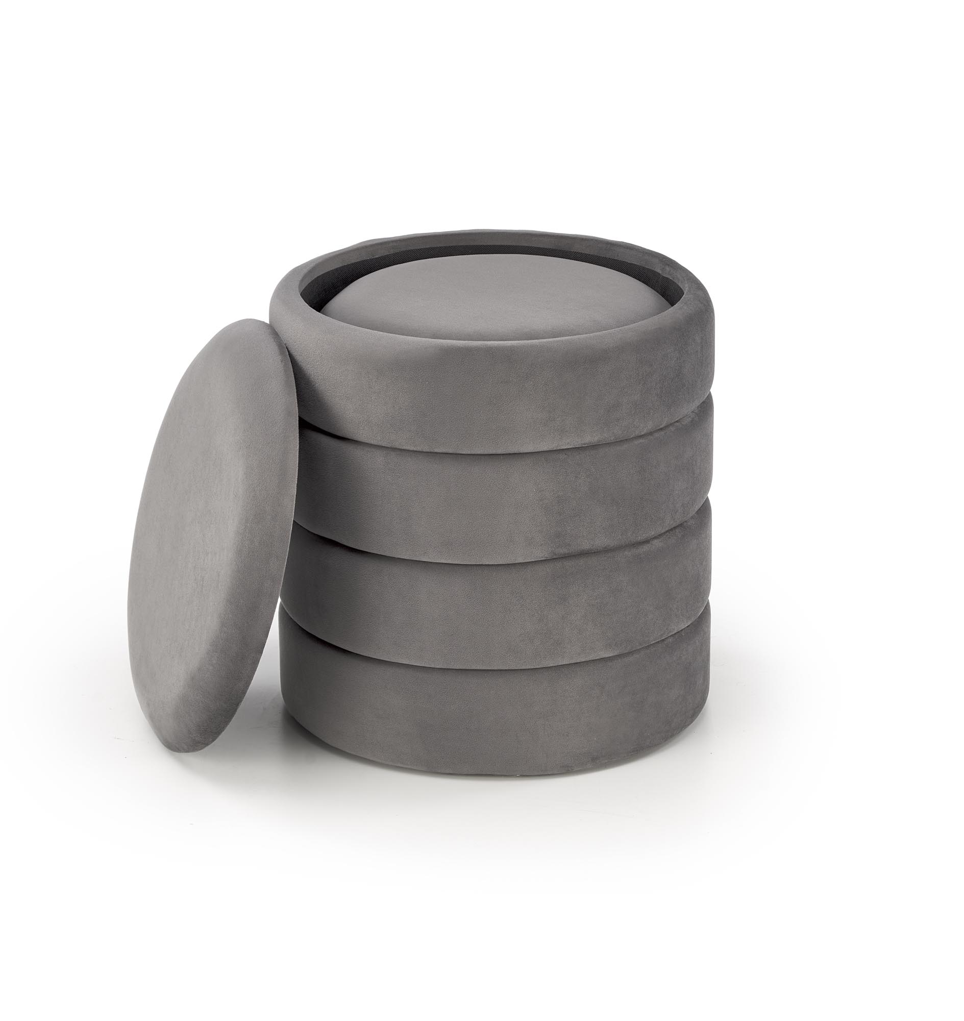wymiary: 40/44 cm oraz 33/39 cm; zestaw 2 puf z funkcją pojemnika, materiał: tkanina – velvet, kolor popielaty