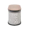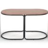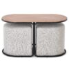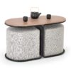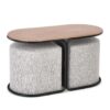 wymiary: 88/43/49 cm, ława z pufami, materiał: MDF okleinowany / stal malowana proszkowo / tkanina, kolor: orzech – popielaty – czarny
