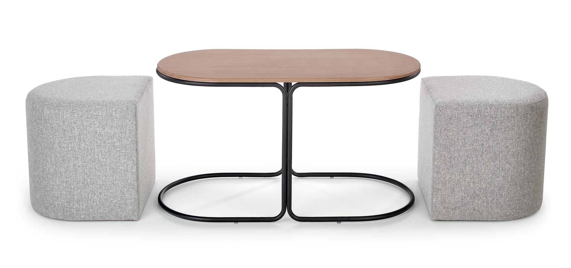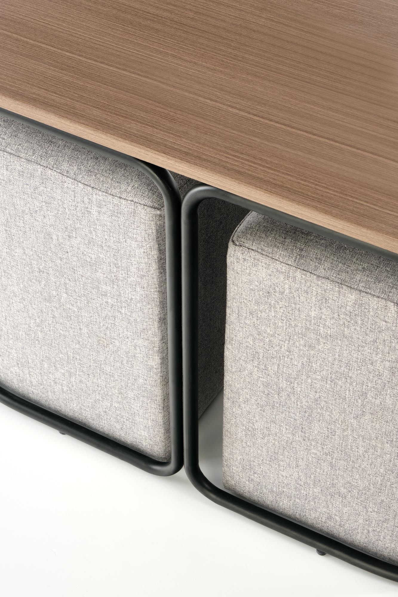 PAMPA, ława z pufami, blat: orzech, nogi: czarny, pufa: popielaty (1p=1szt)