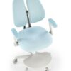 wymiary: 58/77/88-100/47-59 cm; mechanizm podstawowy / regulowana wysokość oparcia / regulowana głebokość oparcia / regulowany podnóżek, tkanina, kolor: j.niebieski