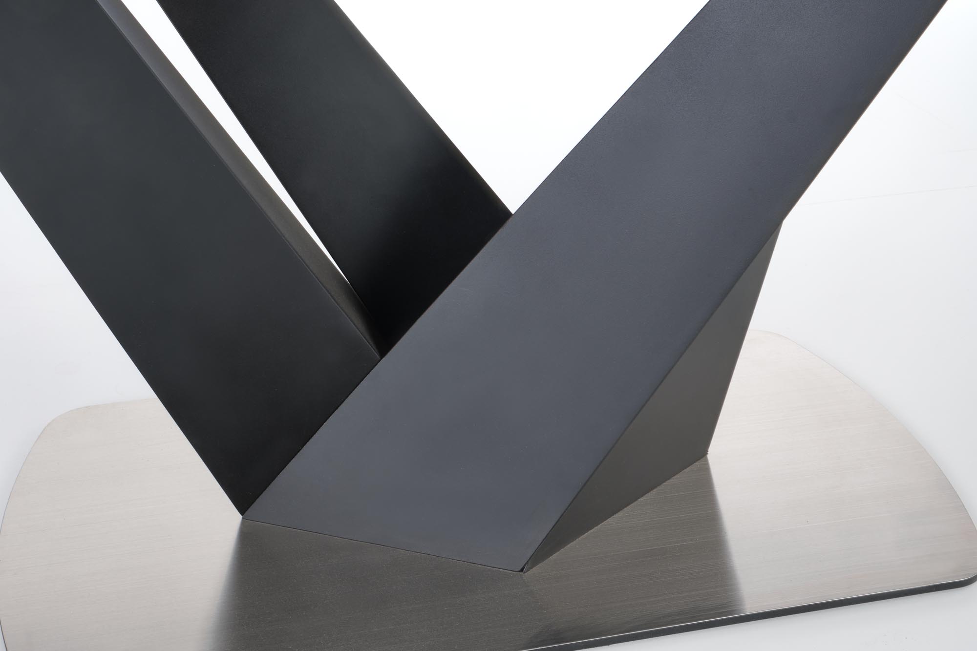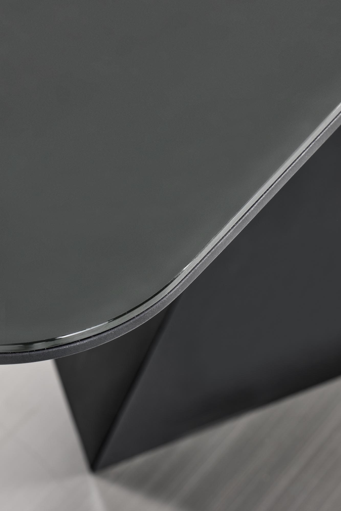 wymiary: 160-200/90/77 cm, stół rozkładany, materiał: szkło / MDF lakierowany – matowy / stal nierdzewna, kolor: blat – ciemny popiel, noga – czarny