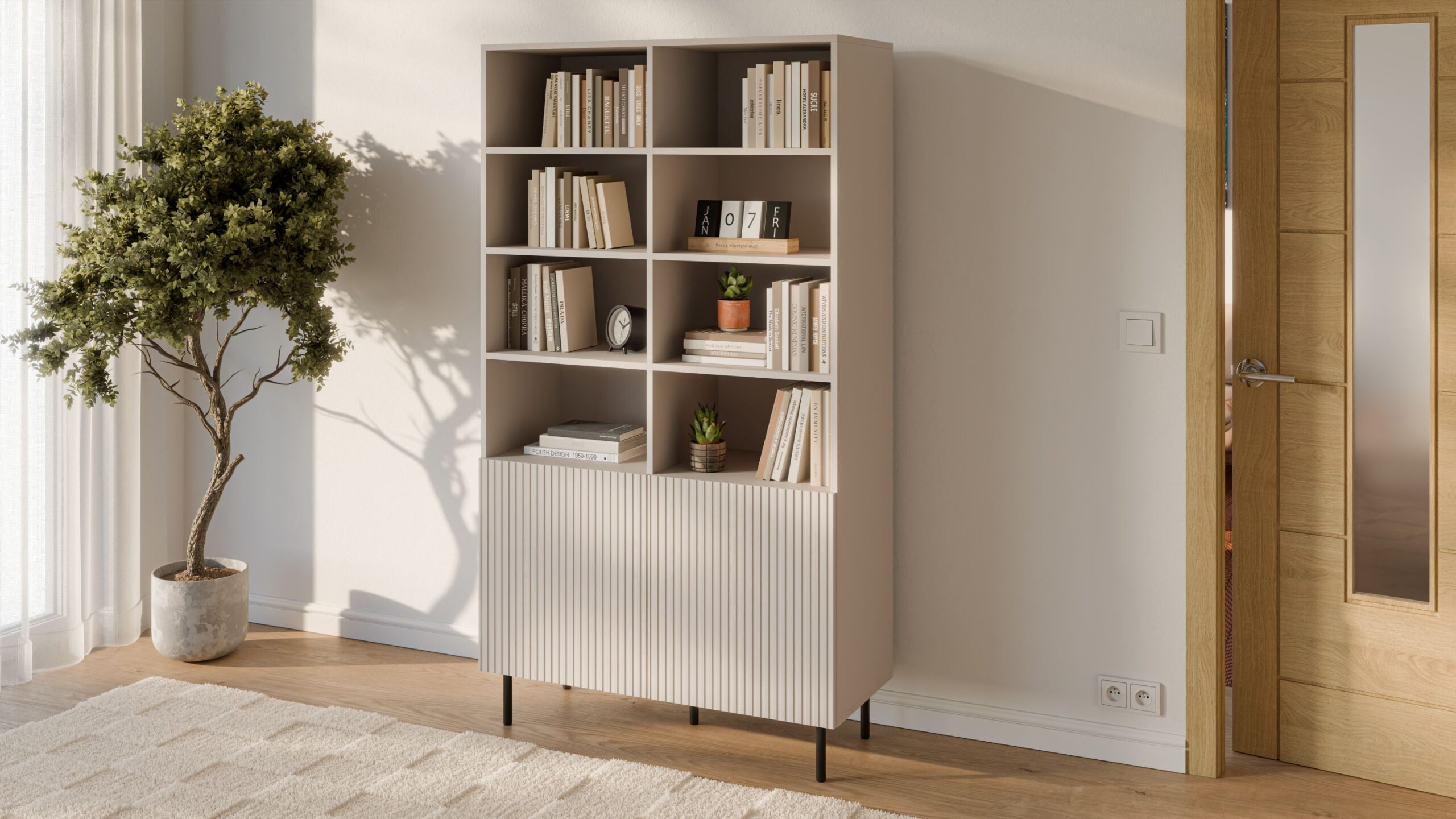 wymiary: 100/40/179 cm, materiał: płyta meblowa laminowana / MDF foliowany / stal malowana proszkowo, kolor: kaszmir – czarny