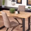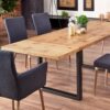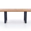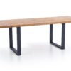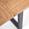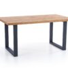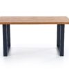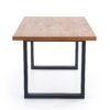 stół rozkładany, wymiary: 160÷250/90/76 cm, materiał: blat – płyta fornirowana, na obrzeżach drewno lite, nogi – stal malowana proszkowo, kolor: blat – jasny dąb, nogi – czarne