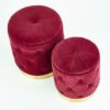 wymiary: 40/44 oraz 33/38 cm, zestaw 2 puf, materiał: tkanina / stal chromowana, kolor: bordowy / złoty