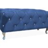 Puf / ławka, tkanina aksamit: granatowy BLUVEL 86 / nogi: metal, kolor: srebrny. Ilość kryształków (guzików): 54 szt., wysokość nóżek: 14 cm