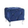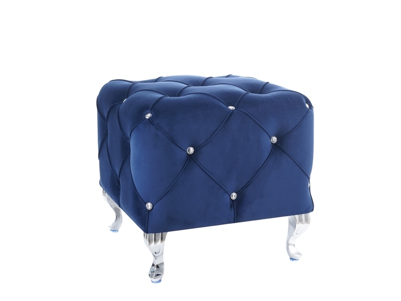 Puf, tkanina aksamit: granatowy BLUVEL 86 / nogi: metal, kolor: srebrny. Ilość kryształków (guzików): 29 szt., wysokość nóżek: 14 cm.