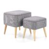 zestaw 2 puf, wymiary: 48/42/43 cm oraz 36/34/40 cm, materiał: tkanina / drewno lite, kolor: popielaty
