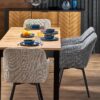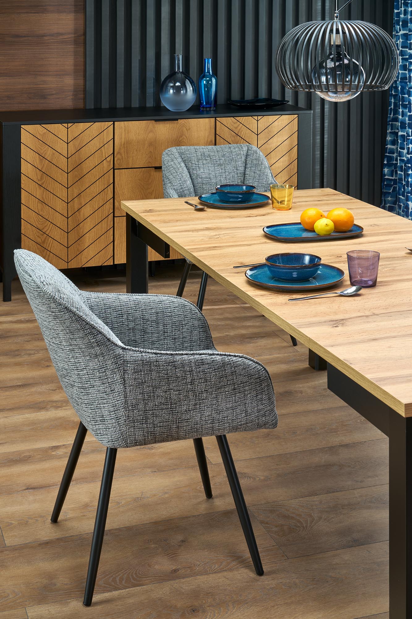 wymiary: 80-200/80/76 cm, stół rozkładany, materiał: płyta meblowa laminowana, kolor: blat – dąb artisan, nogi – czarny