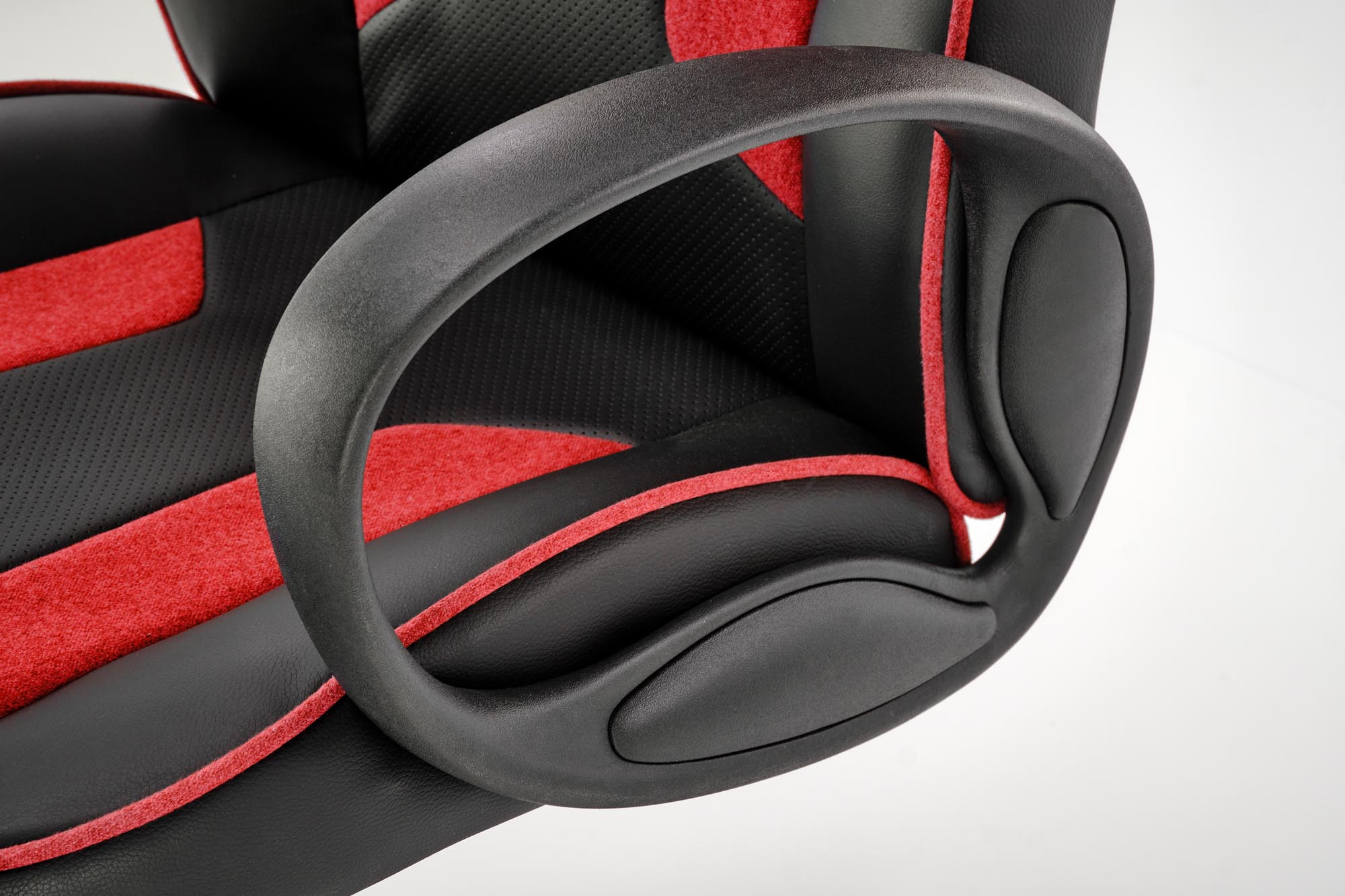 wymiary: 61/70/112-121/43-52 cm; mechanizm TILT, eco skóra / tkanina / tkanina membranowa, kolory: czarny – czerwony