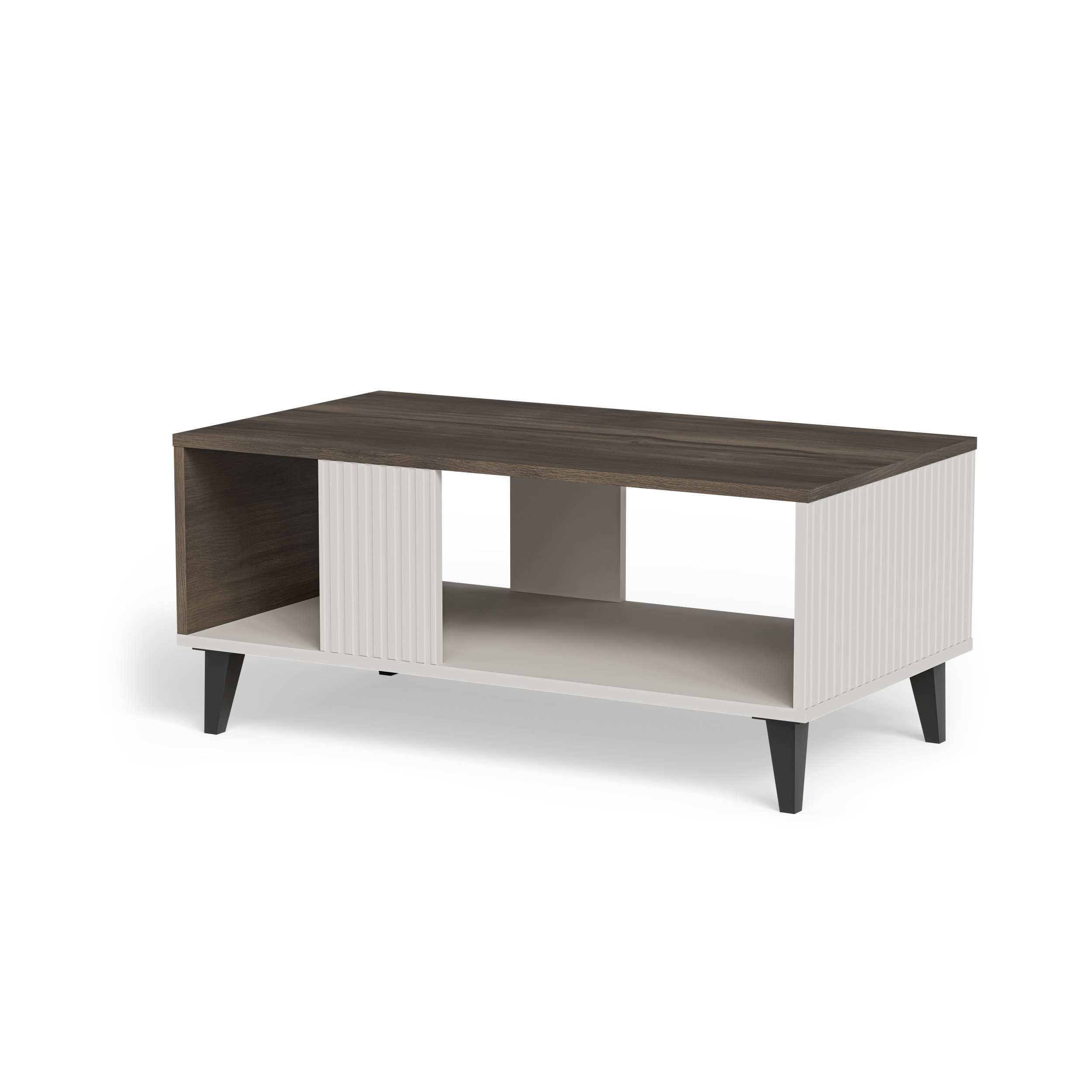 ława, wymiary: 92/50/40 cm, materiał: MDF okleinowany / płyta meblowa okleinowana / polipropylen, kolor: kaszmir – orzech – czarny