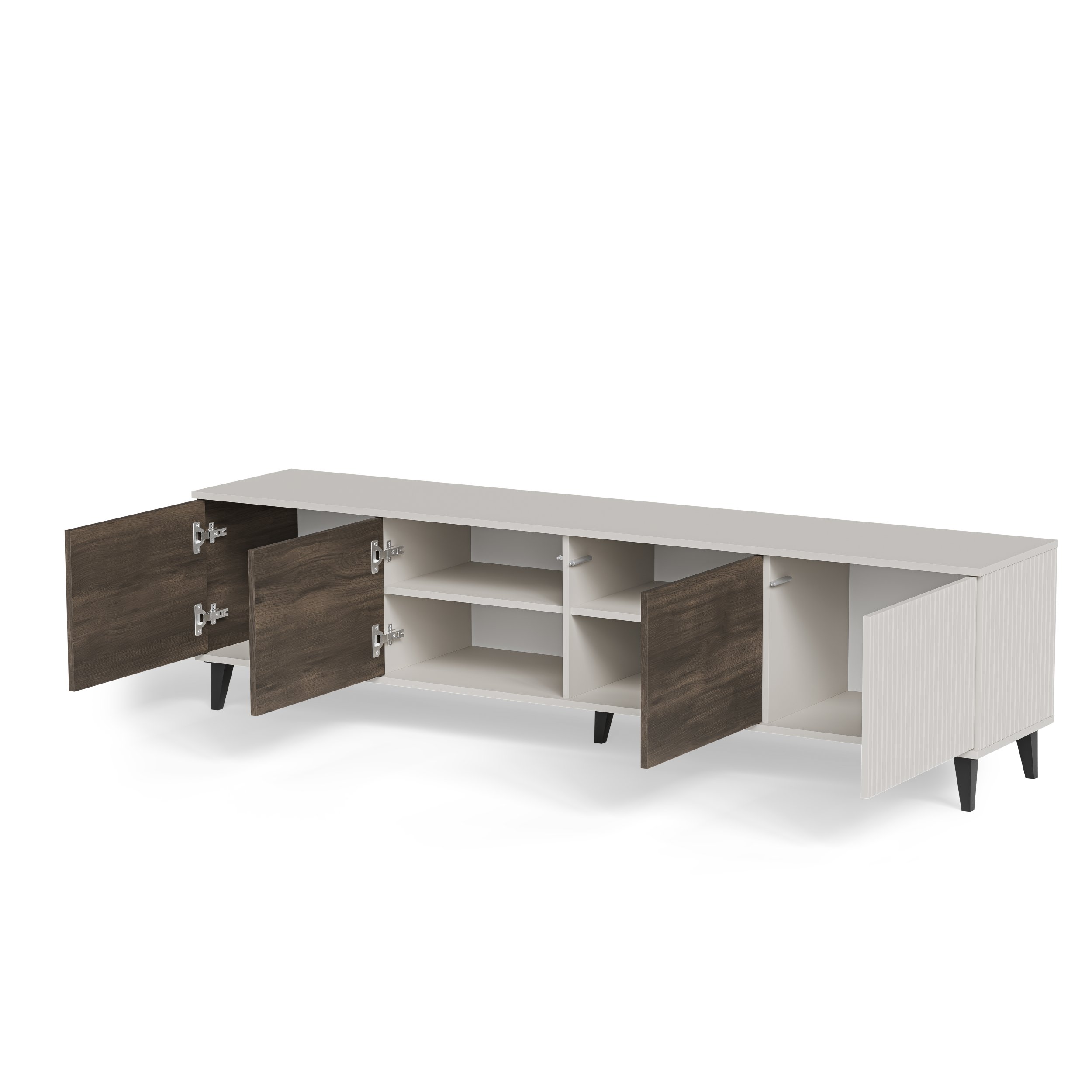 stolik RTV, wymiary: 200/40/52 cm, materiał: MDF okleinowany / płyta meblowa okleinowana / polipropylen, kolor: kaszmir – orzech – czarny