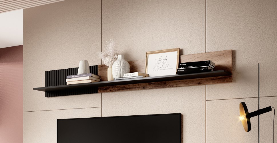 Strona główna » Sklep » RANDOM P-2 półka wisząca dąb wotan/czarny (1p=1szt)