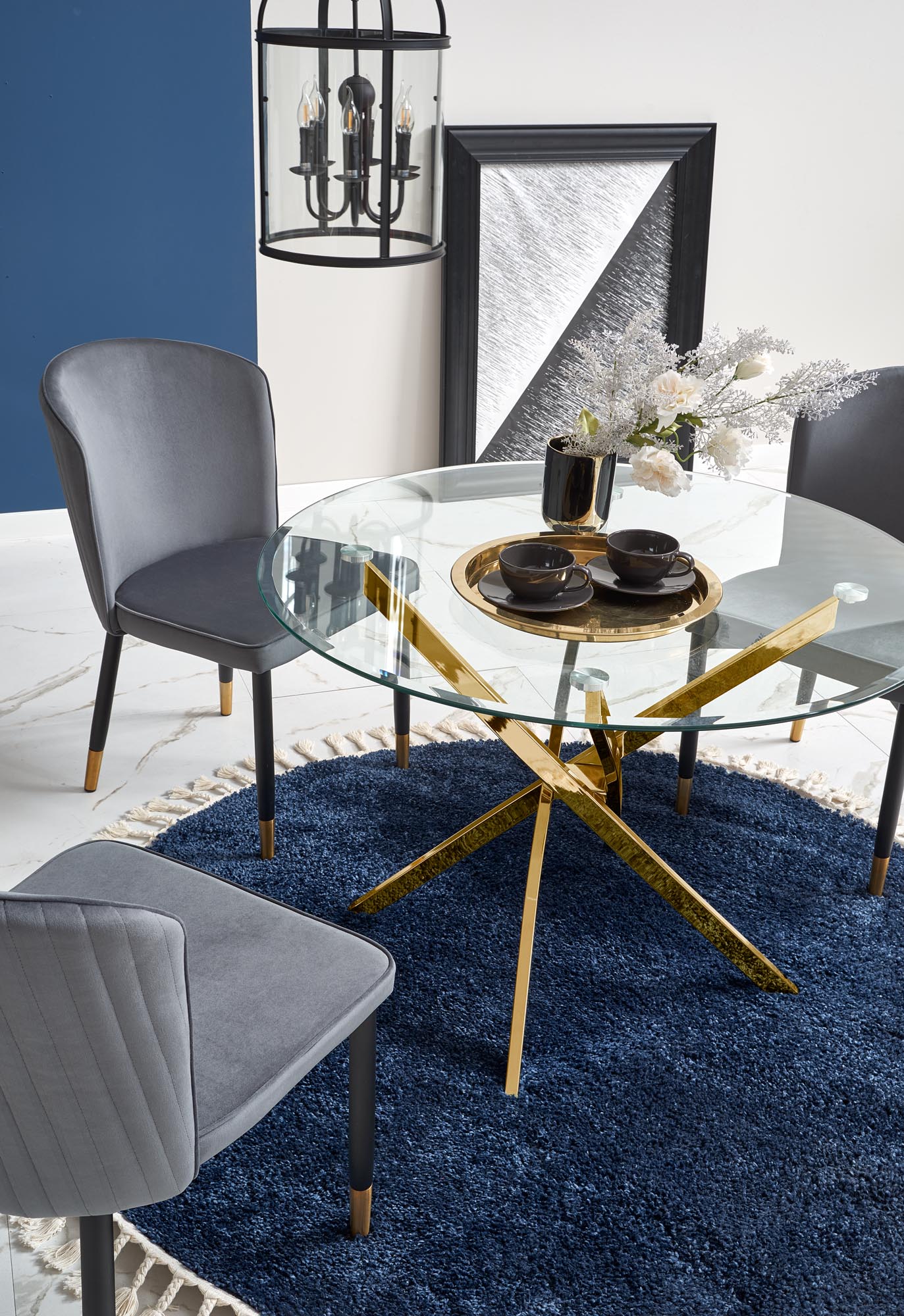RAYMOND stół, blat – transparentny, nogi – złoty (2p=1szt)
