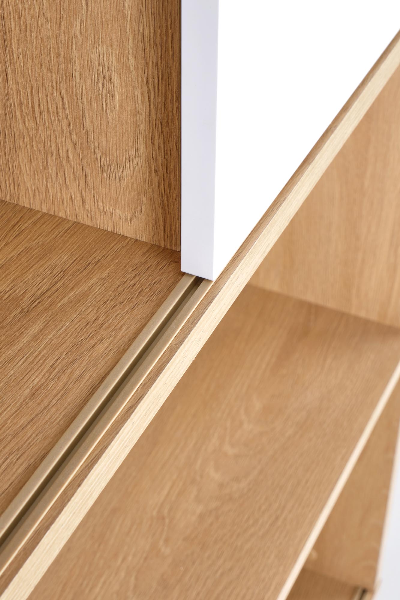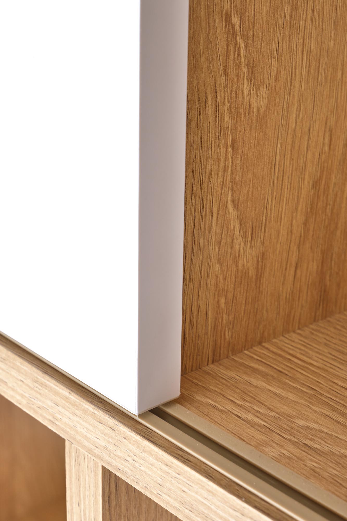 wymiary: 110/33/180 cm, przesuwne fronty, materiał: płyta meblowa laminowana, kolory: dąb złoty/ biały mat