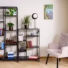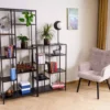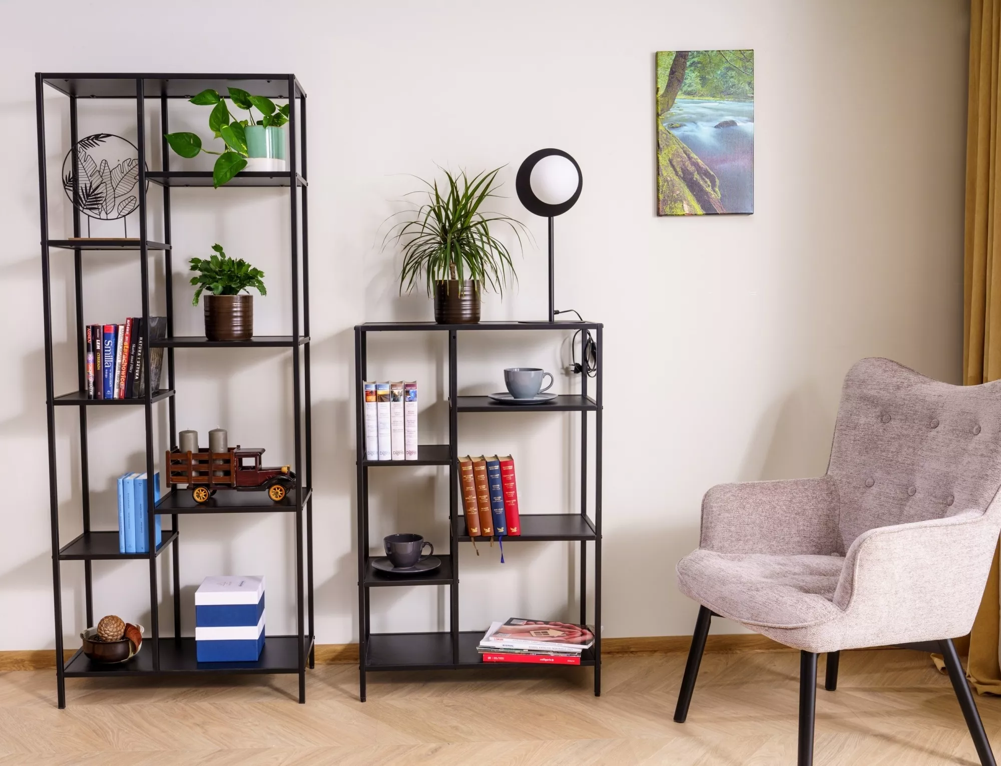 Regał, półki: płyta laminowana, stelaż: metal, kolor: czarny / czarny mat.