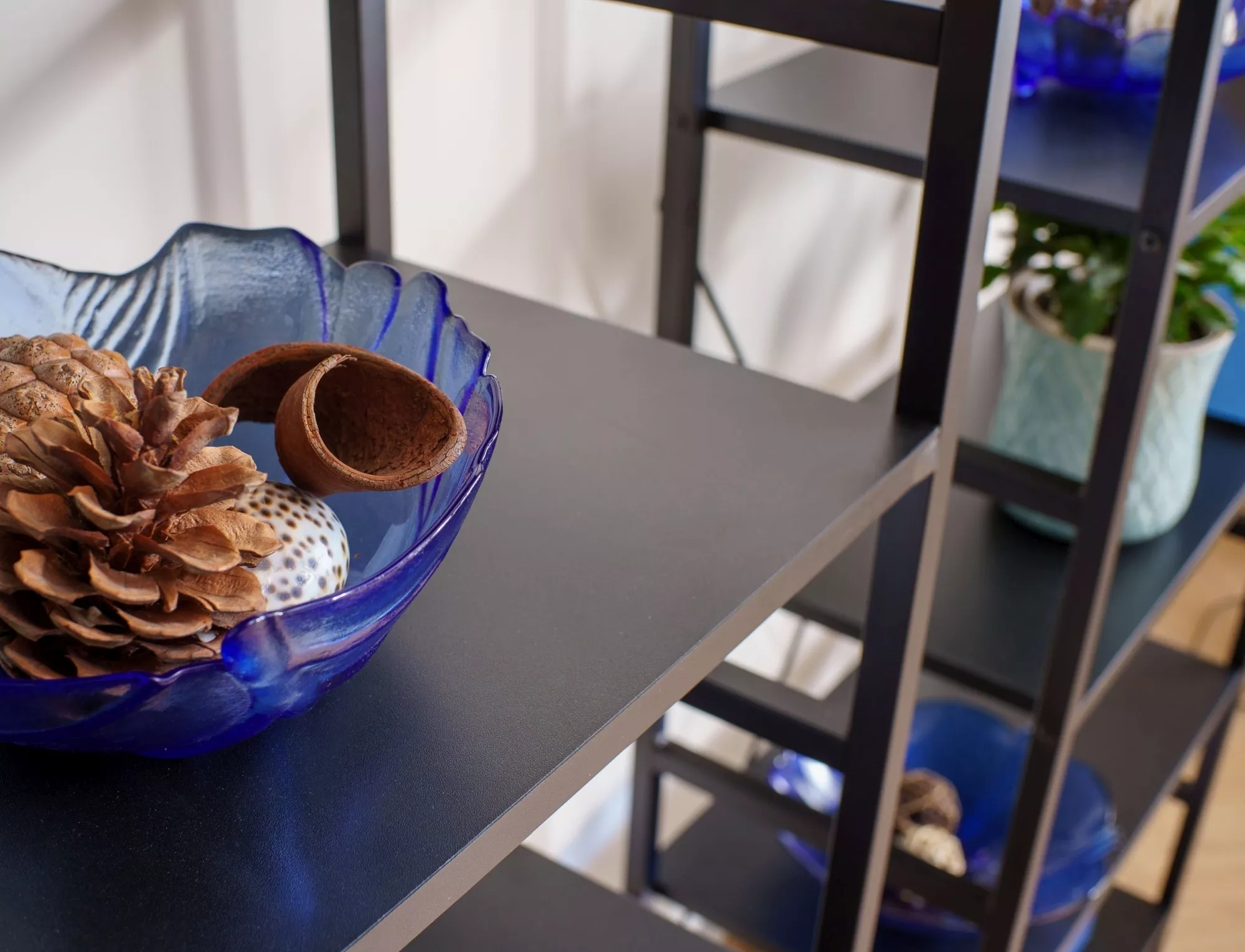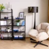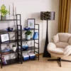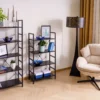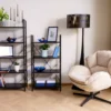 Regał, półki: płyta laminowana, stelaż: metal, kolor: czarny / czarny mat.