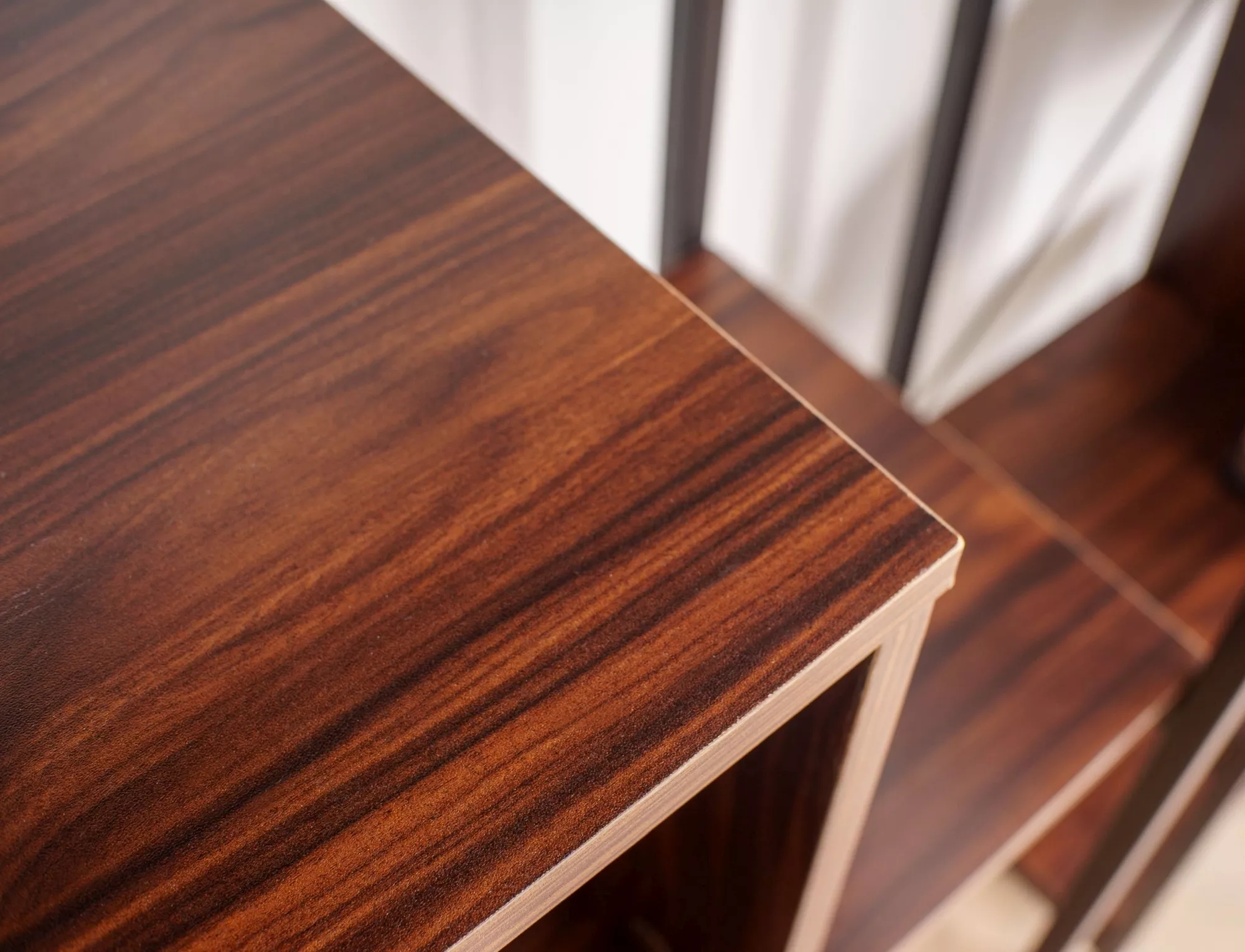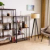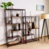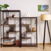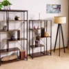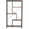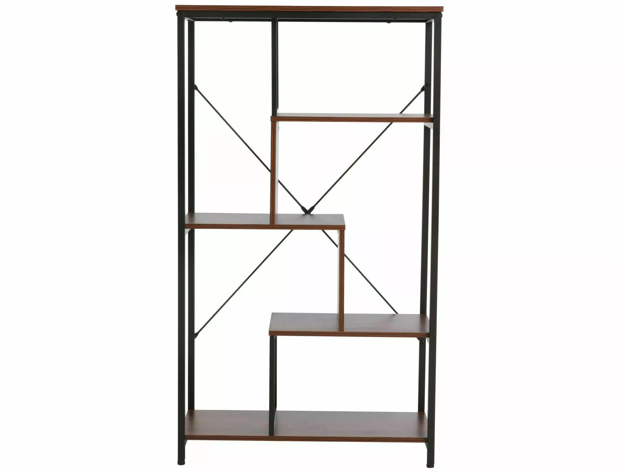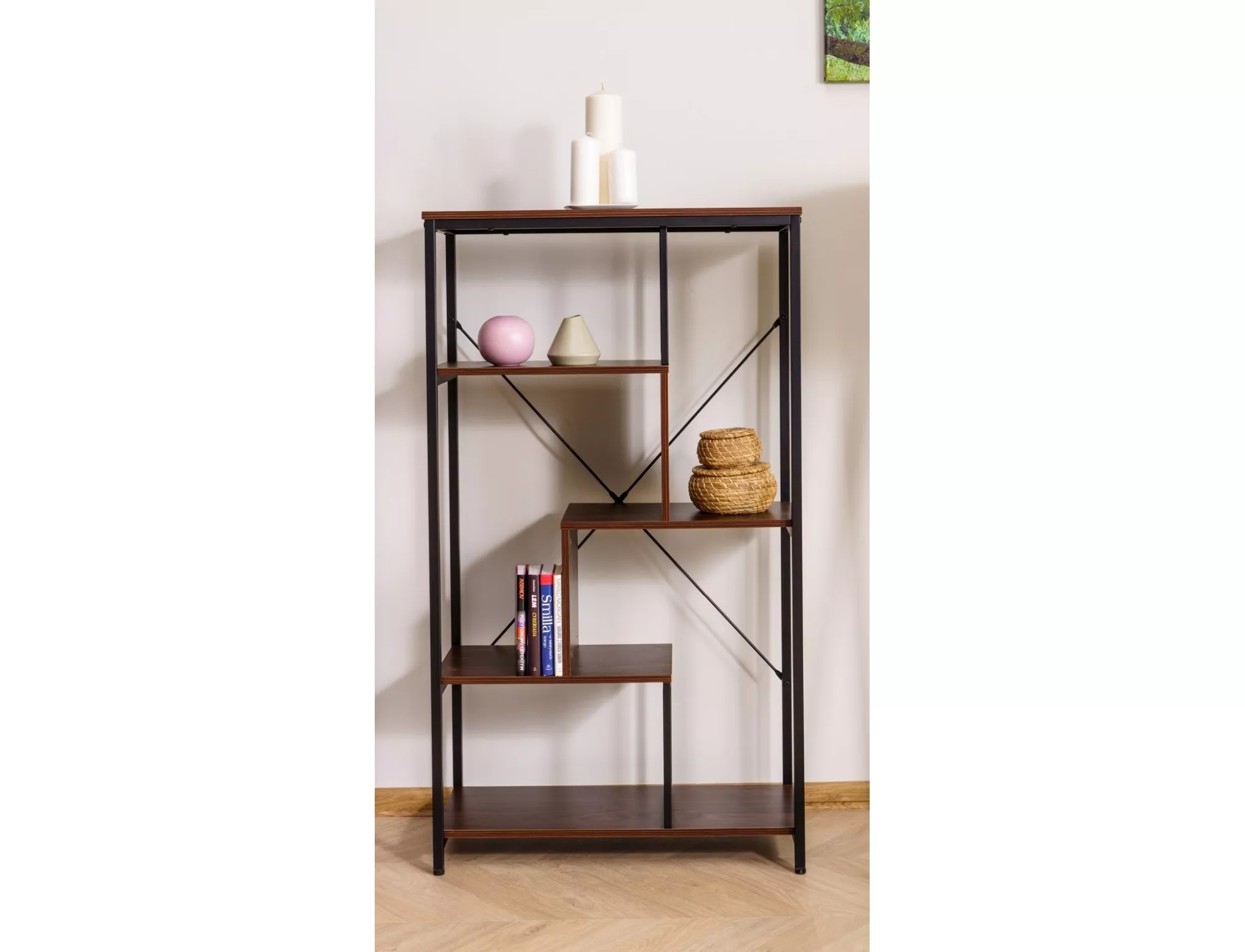 Regał, półki: płyta laminowana, stelaż: metal, kolor: ciemny orzech / czarny mat.