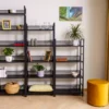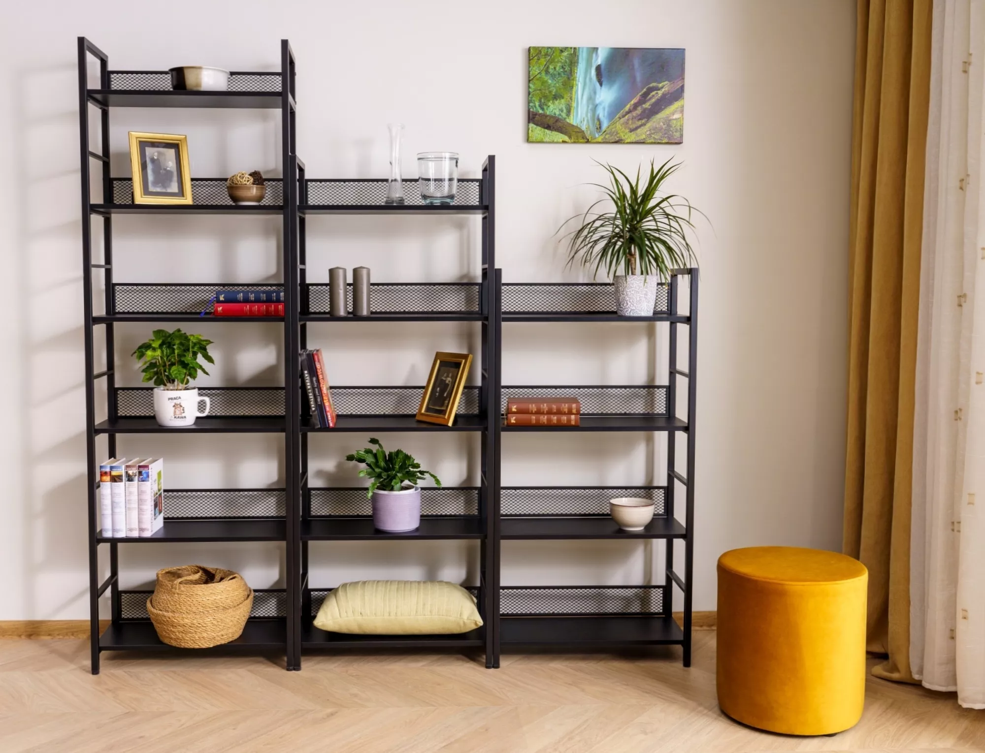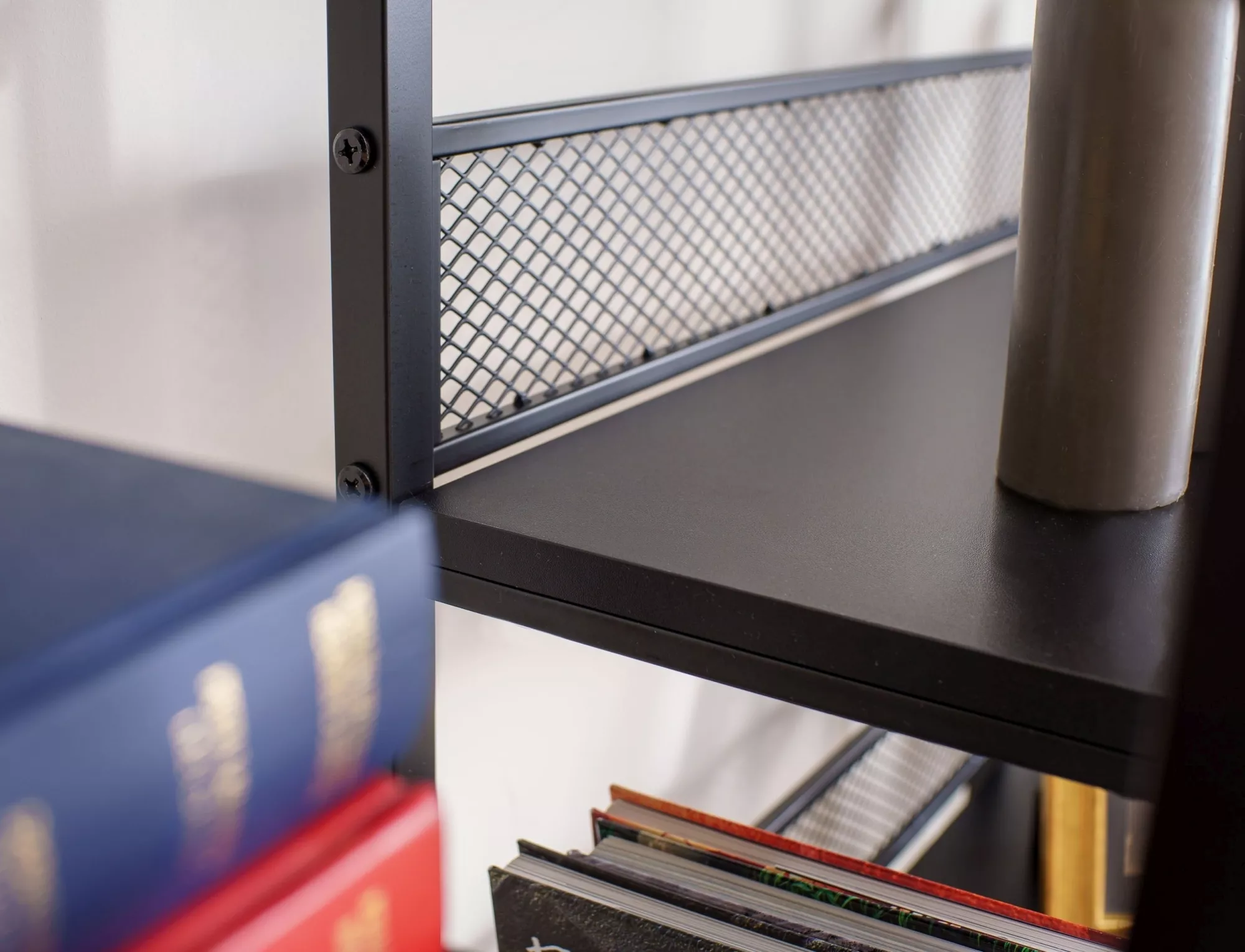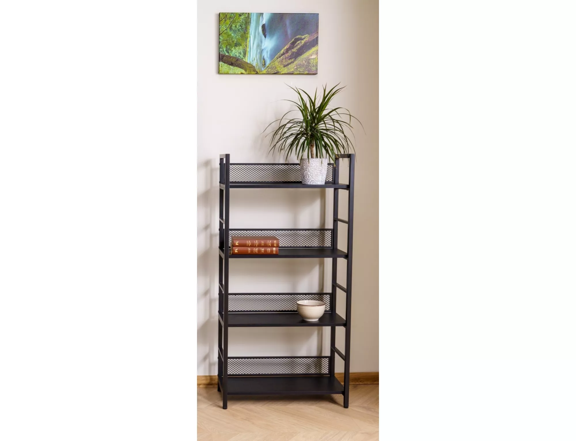 Regał, półki: płyta laminowana, stelaż: metal, kolor: czarny / czarny mat.
