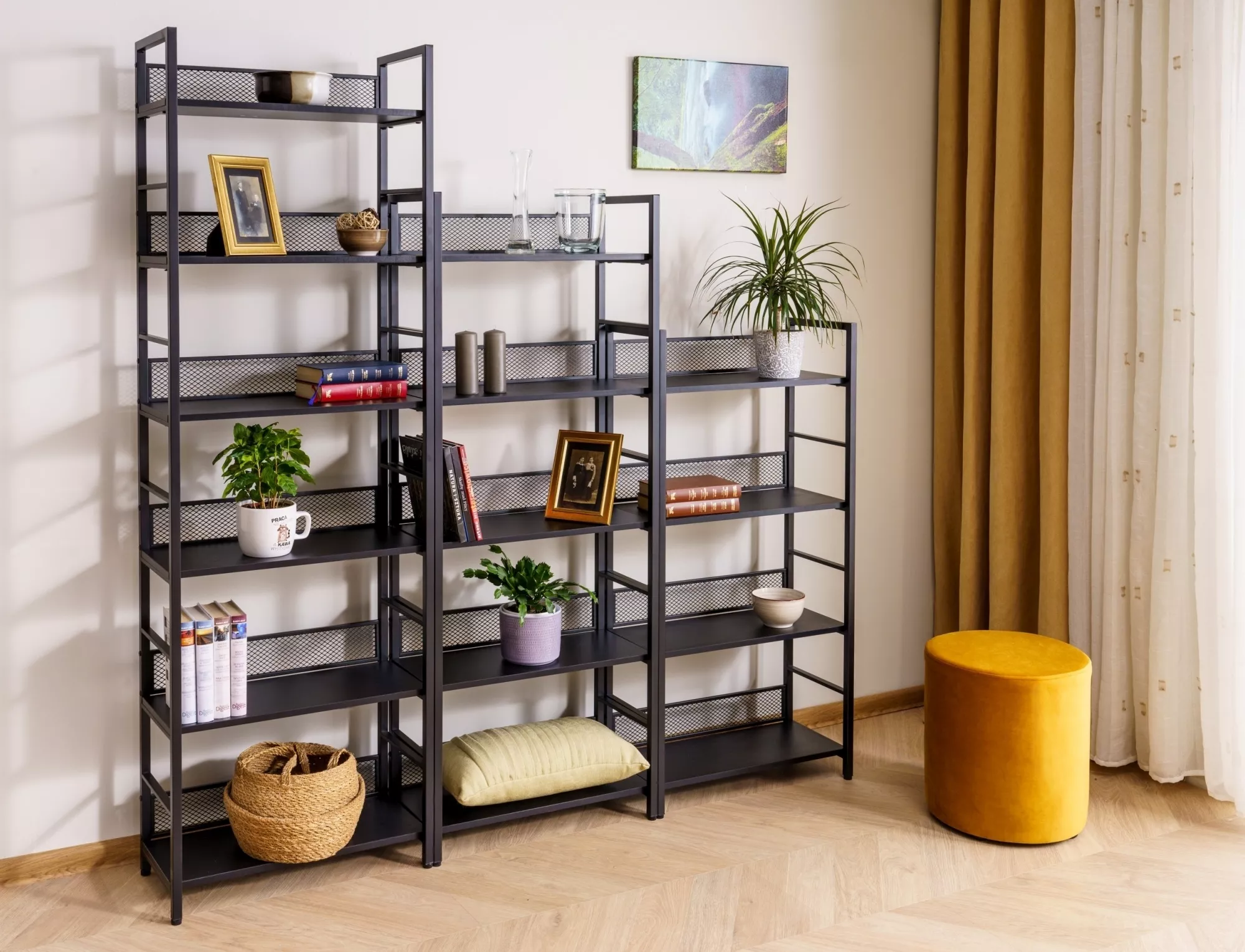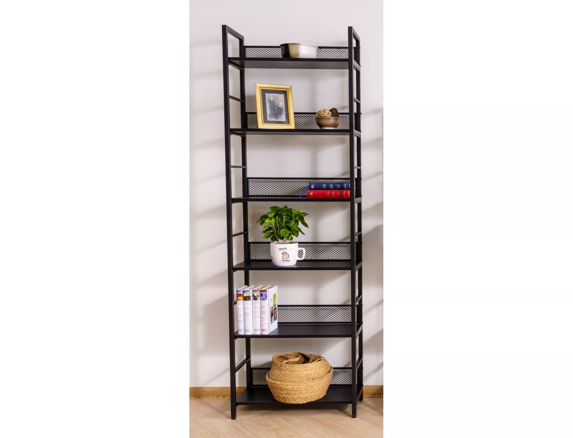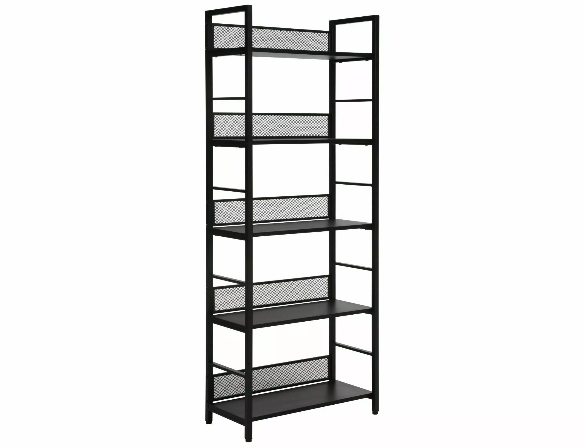 Regał, półki: płyta laminowana, stelaż: metal, kolor: czarny / czarny mat.
