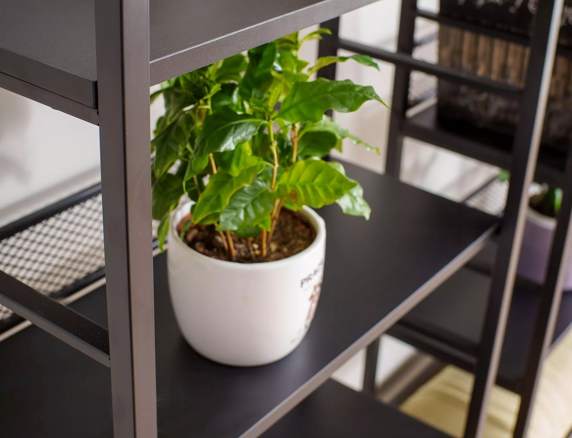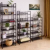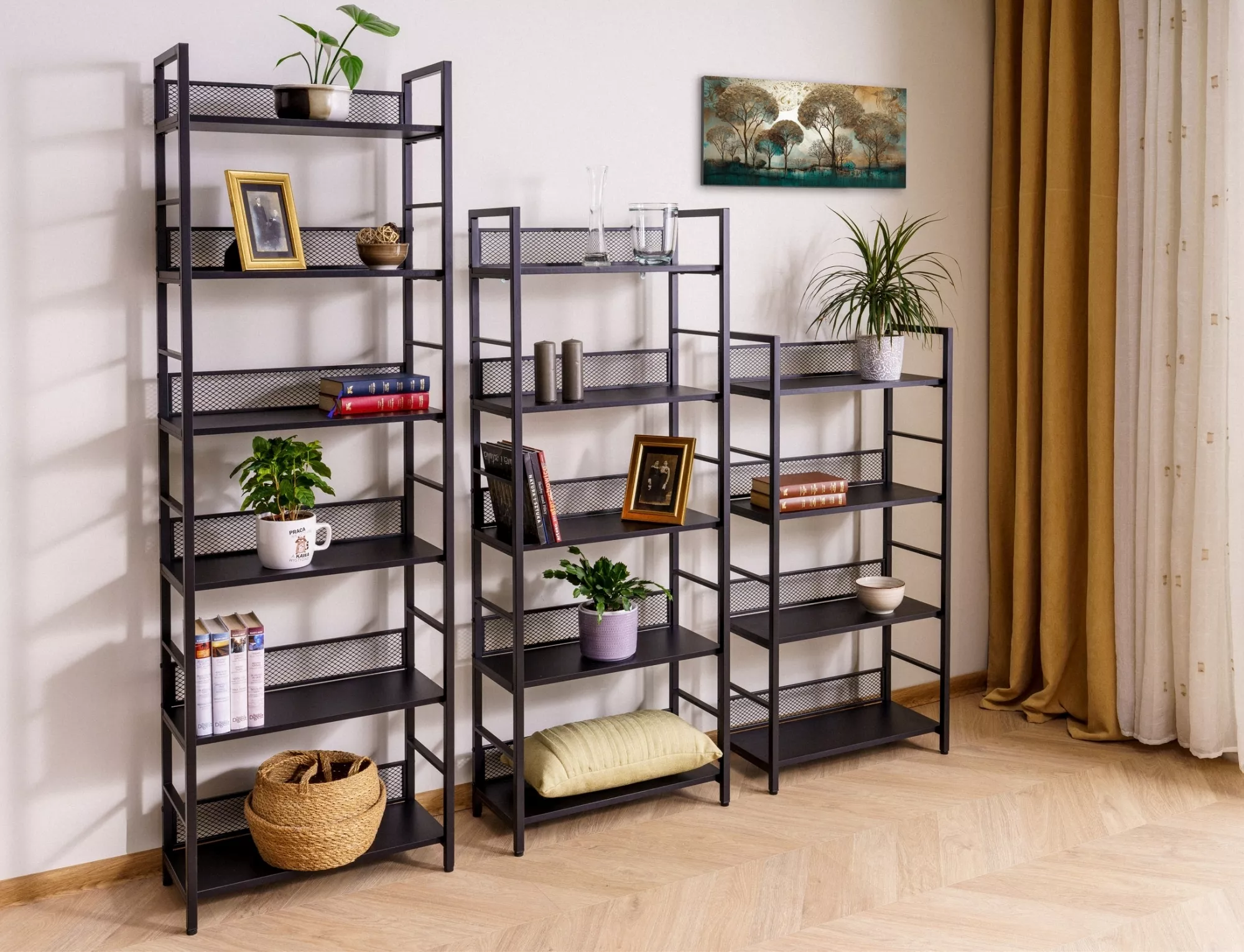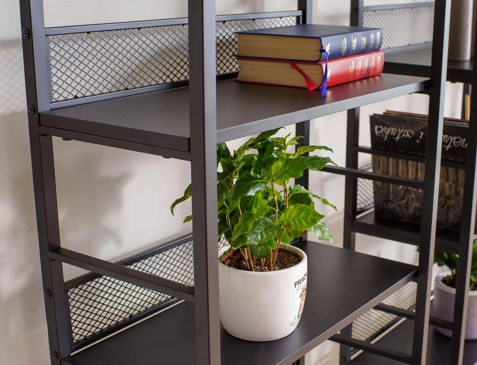 Regał, półki: płyta laminowana, stelaż: metal, kolor: czarny / czarny mat.