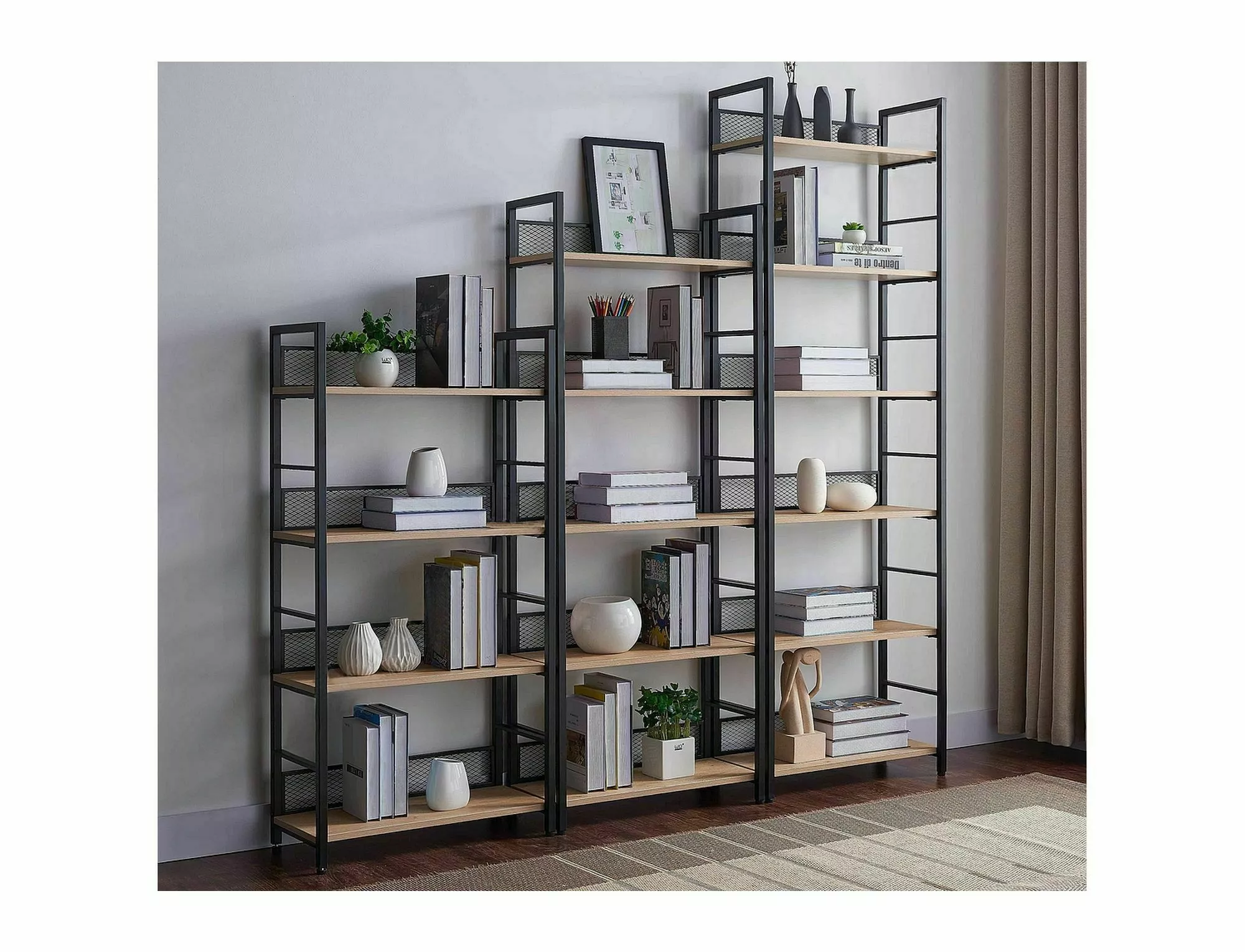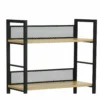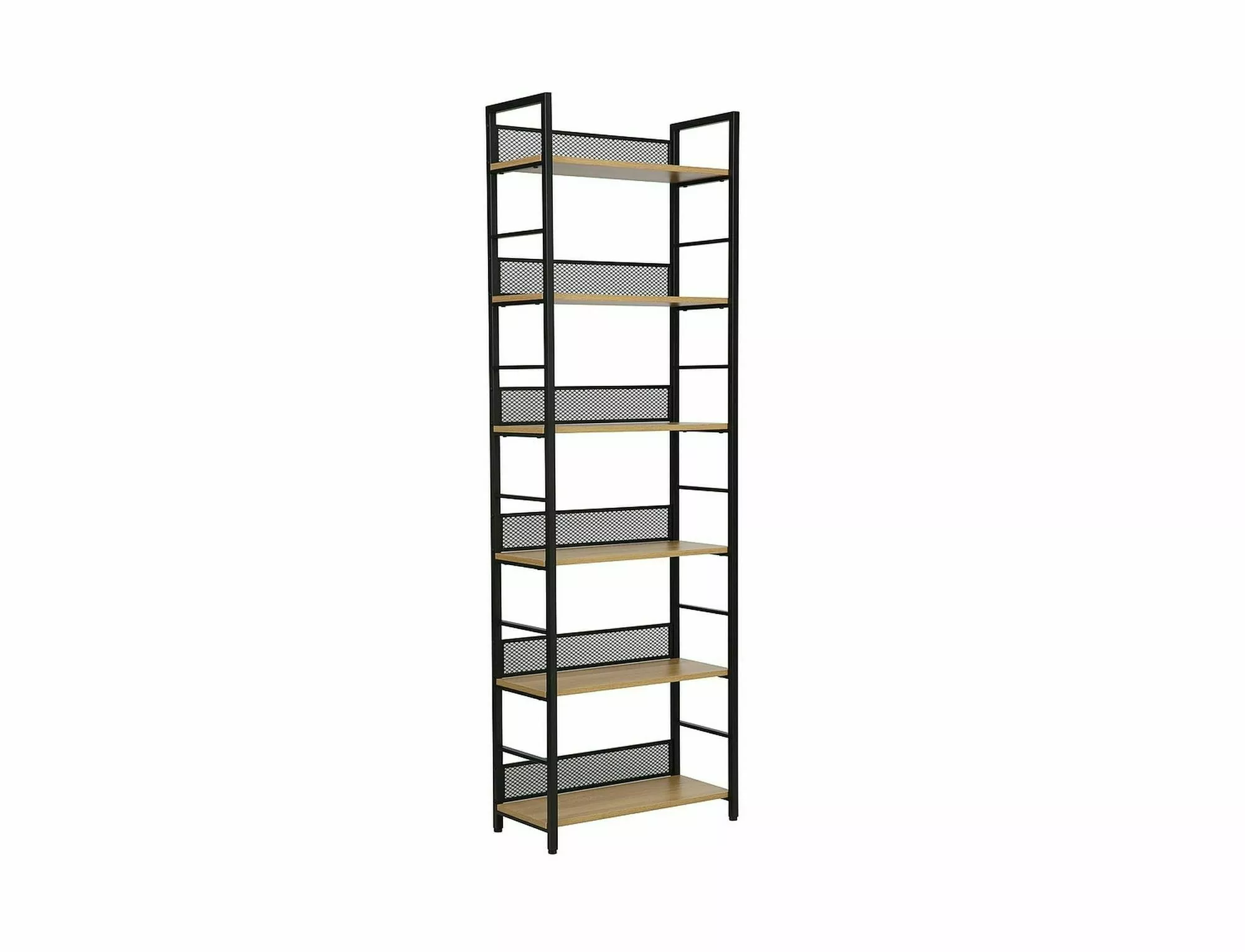 Regał, blat: płyta laminowana, stelaż: metal, kolor: dąb / czarny mat. W kolekcji dostępne 3 wysokości regałów.