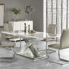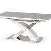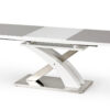 stół rozkładany, wymiary: 160÷220/90/78 cm, materiał: szkło / MDF lakierowany / stal nierdzewna, kolor: szkło – popiel, MDF – biały