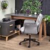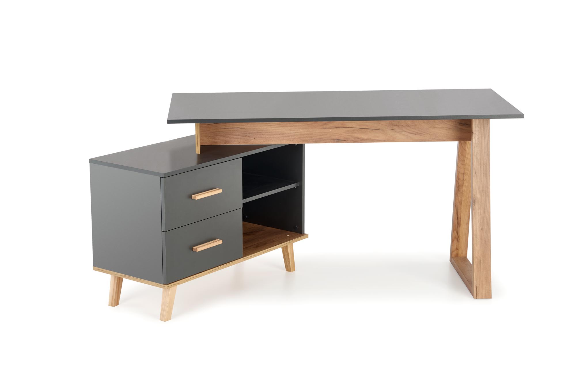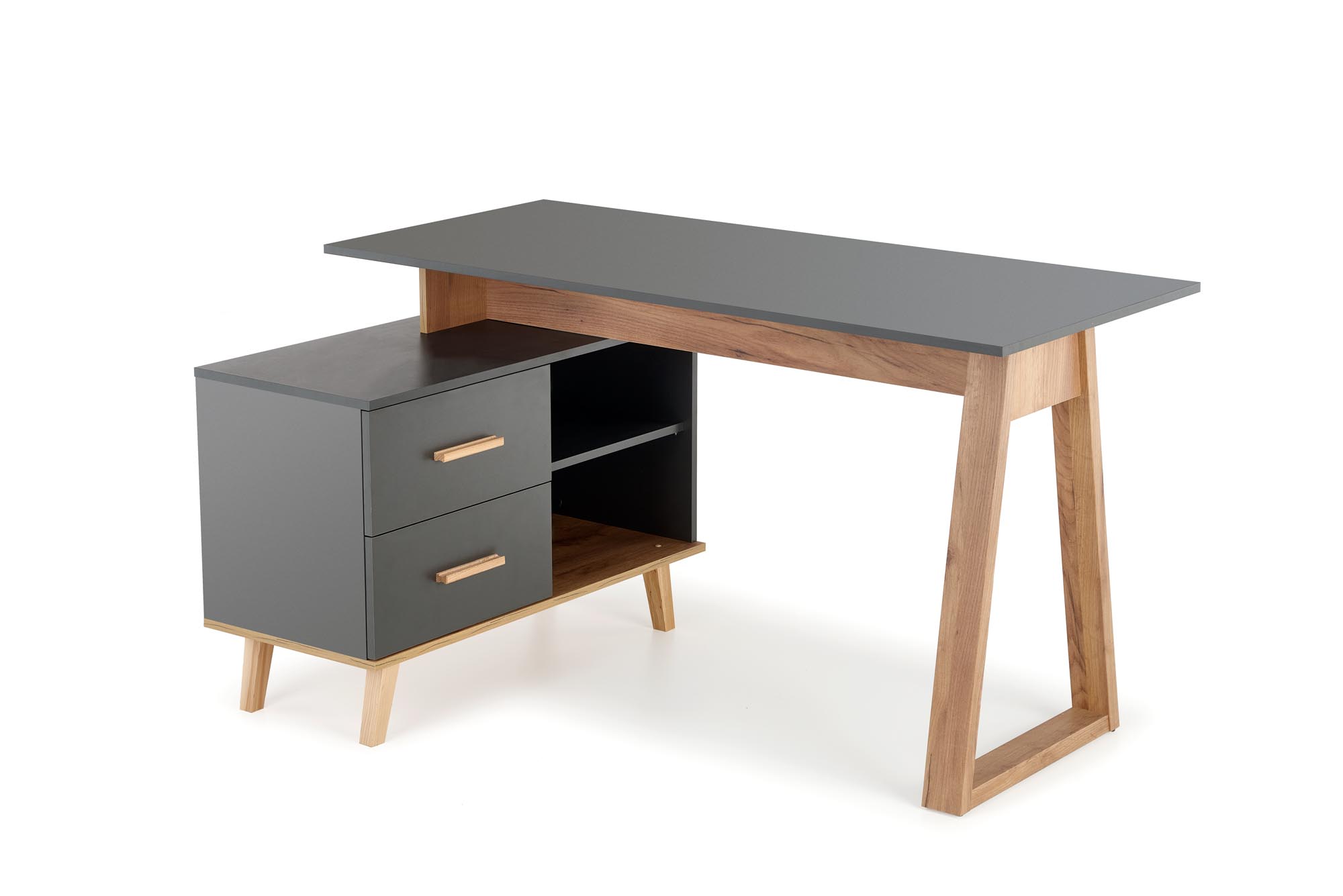 wymiary: 134-210/60-90/78 cm, biurko proste albo narożne, materiał: płyta meblowa okleinowana / MDF okleinowany / drewno lite, kolor: antracyt mat – dąb wotan