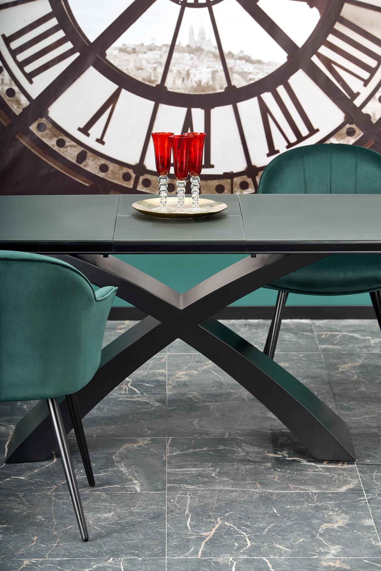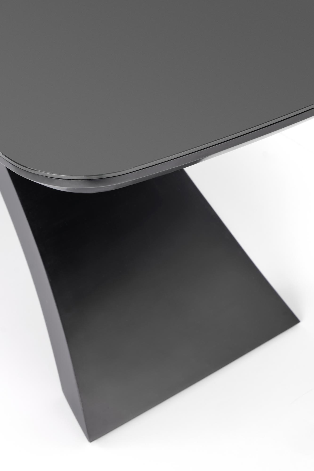 wymiary: 180-220/89/75 cm, stół rozkładany, materiał: szkło / MDF lakierowany, kolor: blat – ciemny popiel, noga – czarny