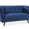 Sofa, tkanina aksamit: Bluvel 86 – granatowy / drewno, kolor: wenge. Wymiary sofy: A – 78, B – 145, C – 43, D – 60, E – 85, F – 12 cm.