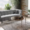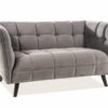 Sofa, tkanina aksamit: Bluvel 14 – szary / drewno, kolor: wenge. Wymiary sofy: A – 78, B – 145, C – 43, D – 60, E – 85, F – 12 cm.